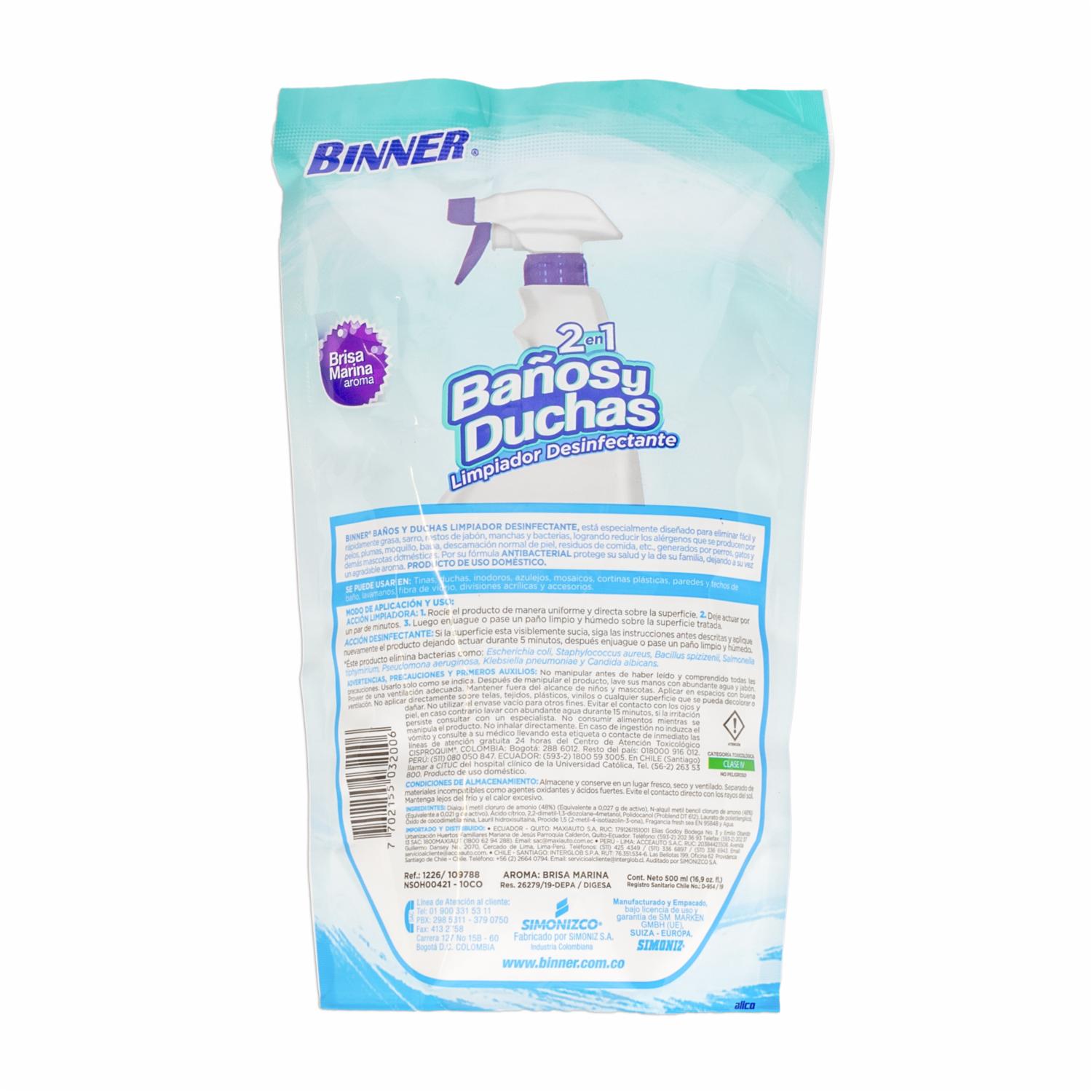 consultando preciosLimpiador Desinfectantes Para Baños / Duchas BINNER 500 Ml – BINNER. Disponible en nuestros locales. Precio y stock pueden variar según la tienda.
