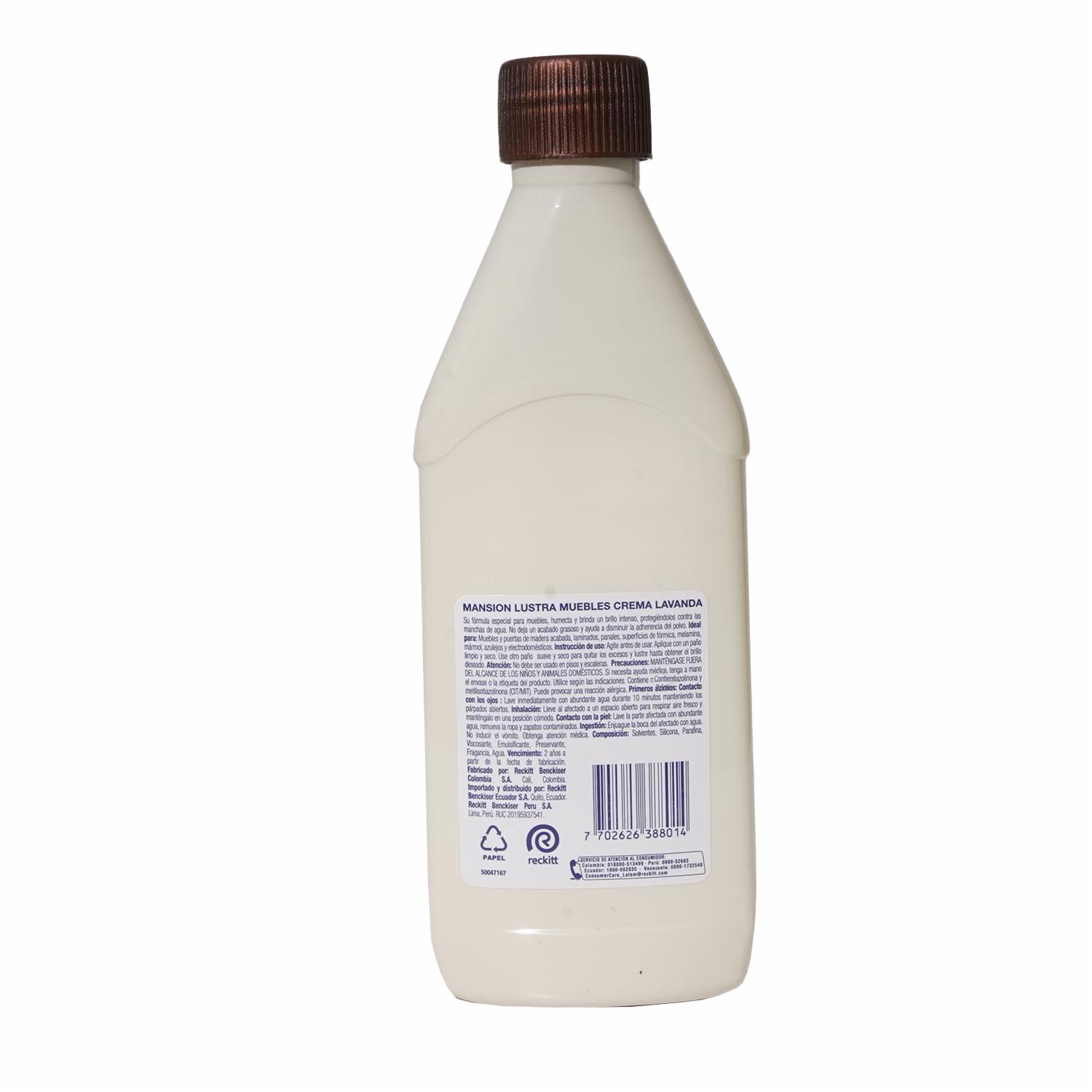 Mansion Crema Lavanda Es Un Lustra Muebles Que Garantiza La Protección Que Ellos Se Merecen. Su Fórmula Forma Una Capa Protectora Y Brillante Que Ayuda A Proteger Contra Las Manchas De Agua Y A Disminuir La Adherencia De Polvo Dejando Una Agradable Fragancia