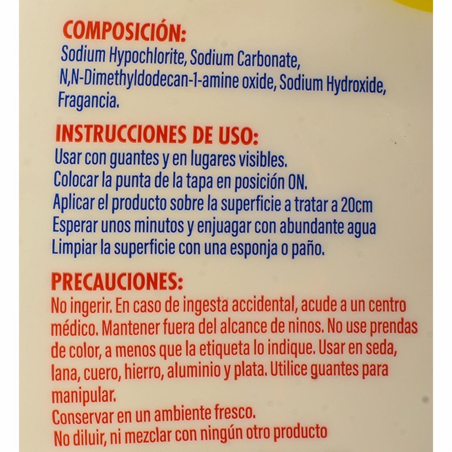 - El limpiador en spray multiuso con cloro elimina manchas, grasa y bacterias de manera rápida y efectiva. Ideal para cocinas, baños y superficies del hogar, dejando un aroma fresco y sensación de limpieza profunda. Práctico y potente para mantener tu casa impecable