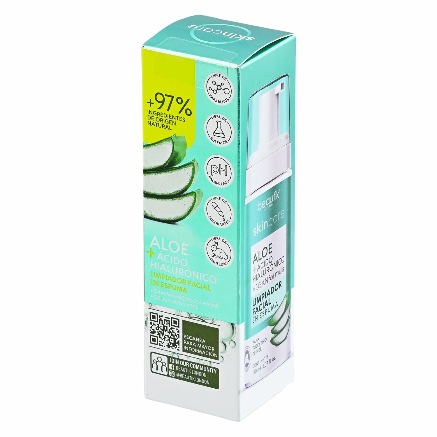 Limpiador Facial Aloe + Acido Hialuronico En Espuma SKIN CARE 150 Ml