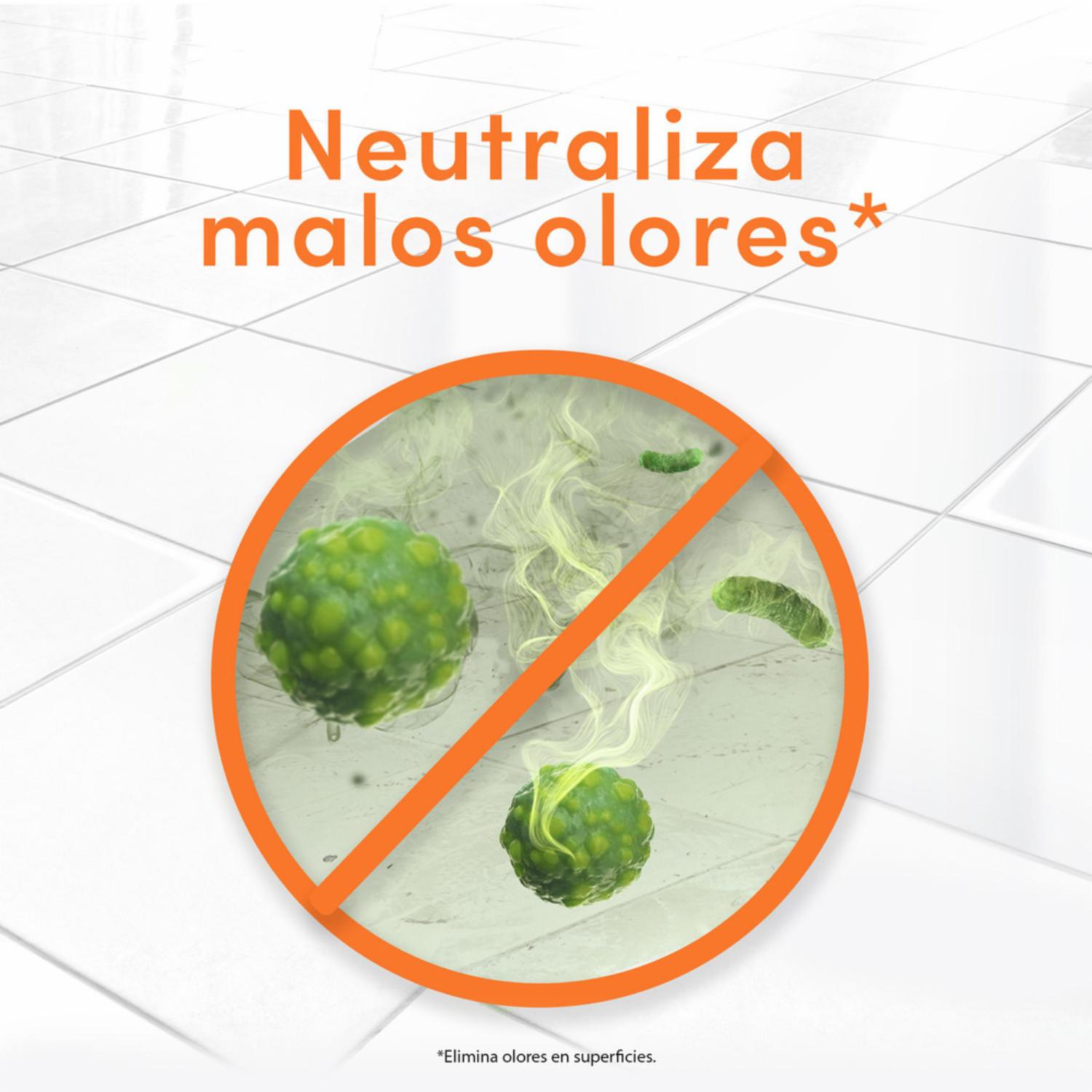 - Cuenta con ingredientes activos y fragancias concentradas que remueven la grasa que se adhiere a las paredes de tu cocina, el sarro del baño y los gérmenes que viven en las superficies de tus pisos. De ahora en adelante, tu suelo quedará visiblemente limpio, sorprende a todas las visitas con una increíble sensación de pulcritud y un delicioso aroma
