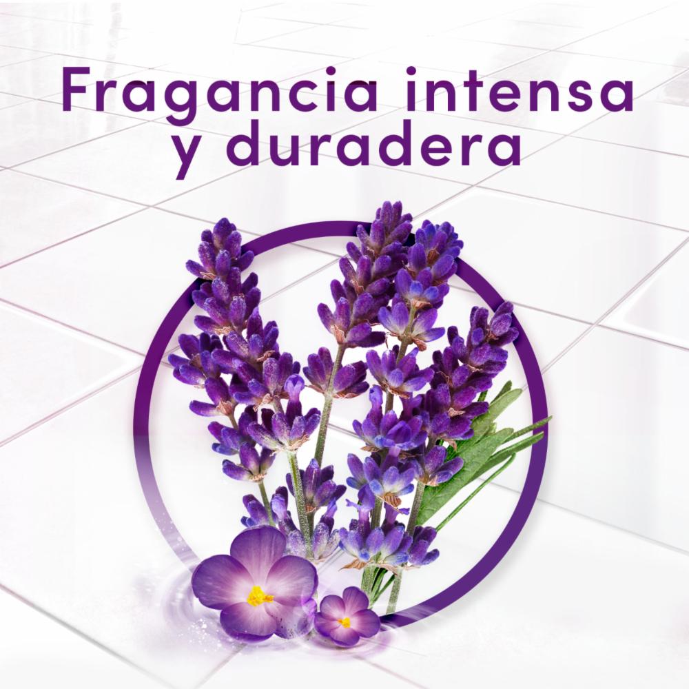 • Siente la frescura en tu hogar con el delicioso aroma que el Limpia pisos Multiusos Fabuloso Frescura Activa Antibacterial Lavanda 1 L tiene para ti y tu familia. Está elaborado con una potente fórmula que aromatiza, limpia y desinfecta hasta los rincones más profundos