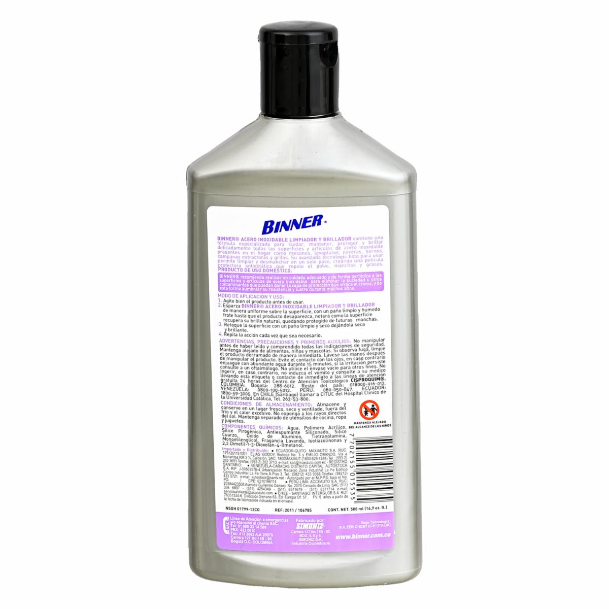 Limpiador Para Dar Brillado Al Acero Inoxidable BINNER 500 Ml