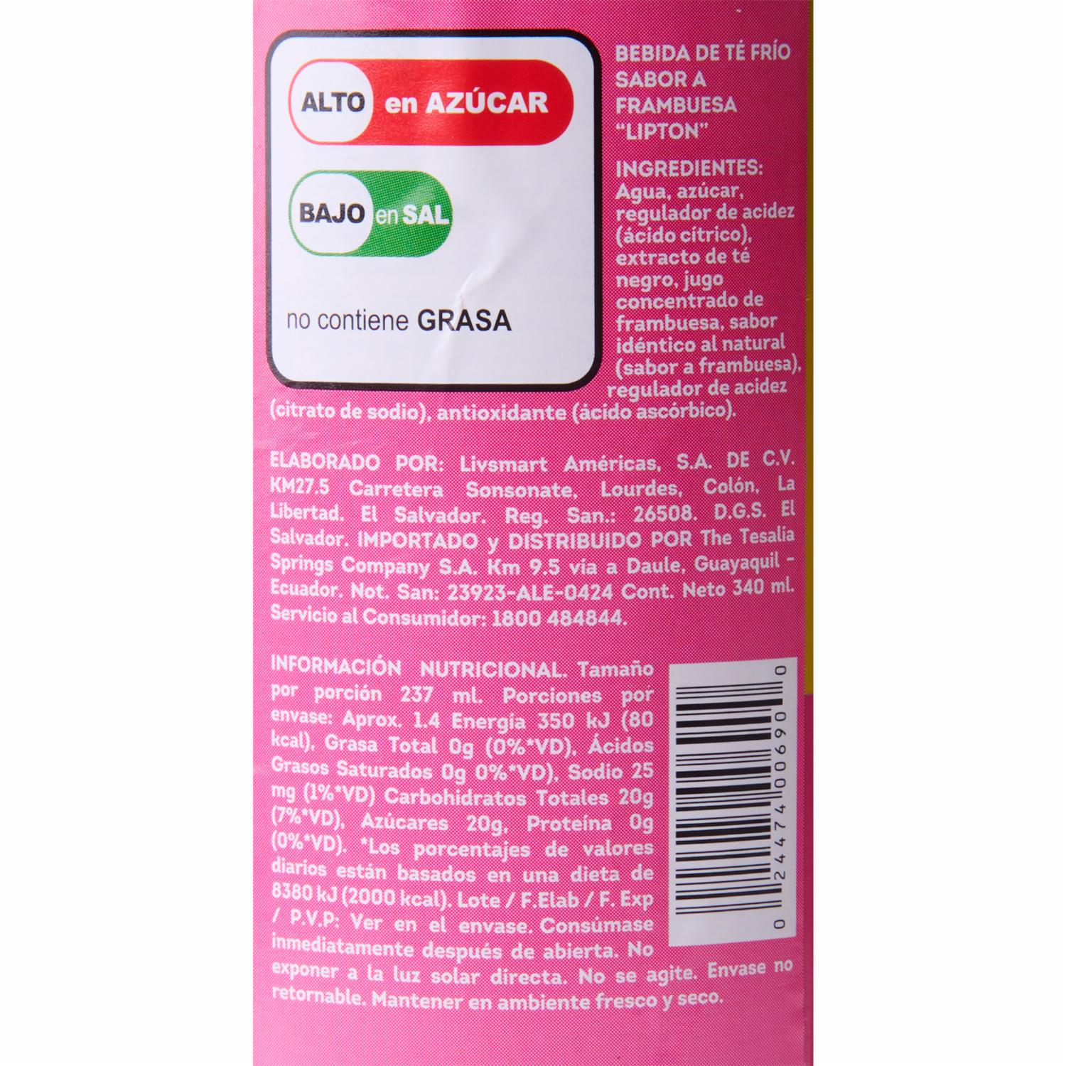 Té Frio De Frambuesa En Lata LIPTON 340 Ml