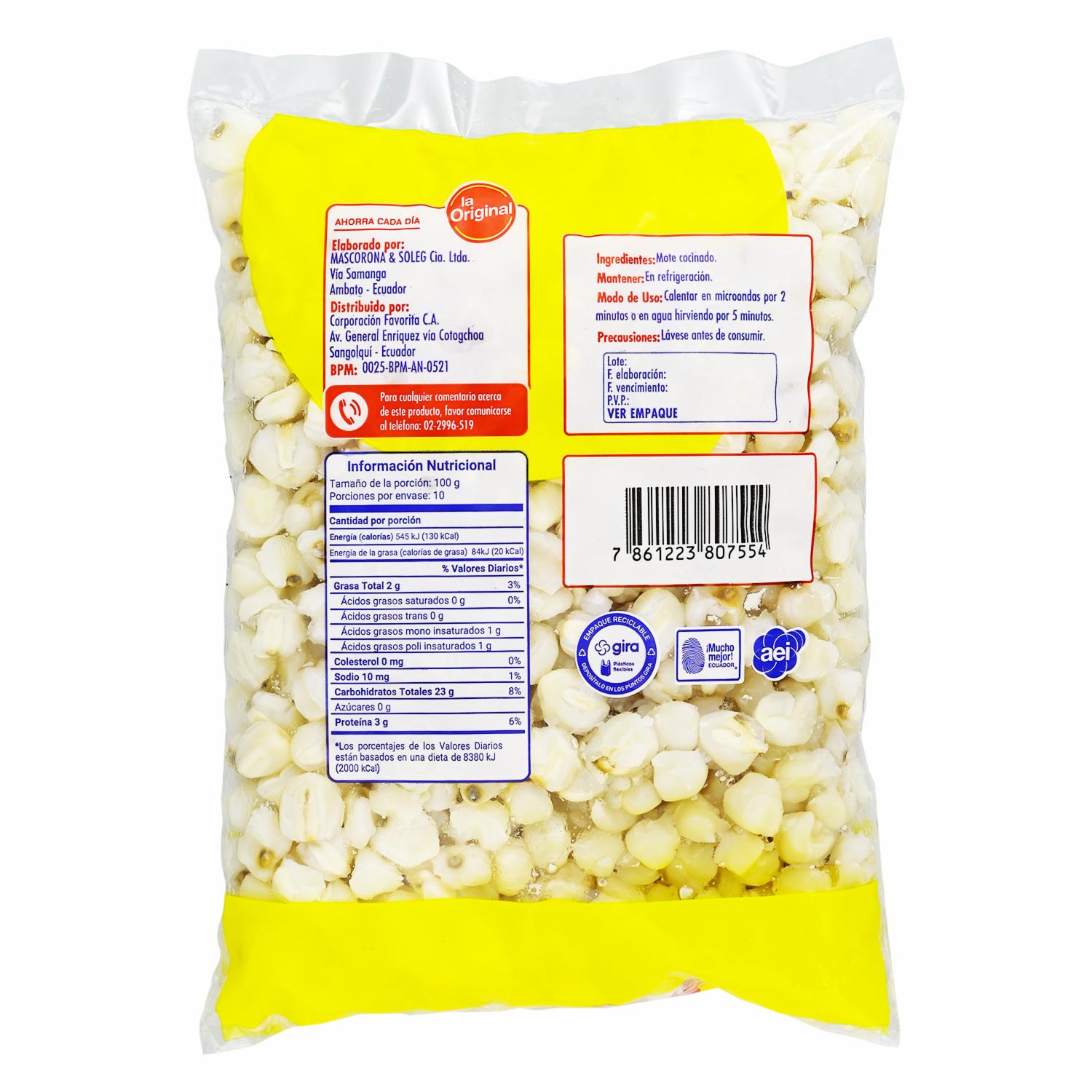 Mote Sin Sal LA ORIGINAL 1000 G – LA ORIGINAL. Disponible en nuestros locales. Precio y stock pueden variar según la tienda.