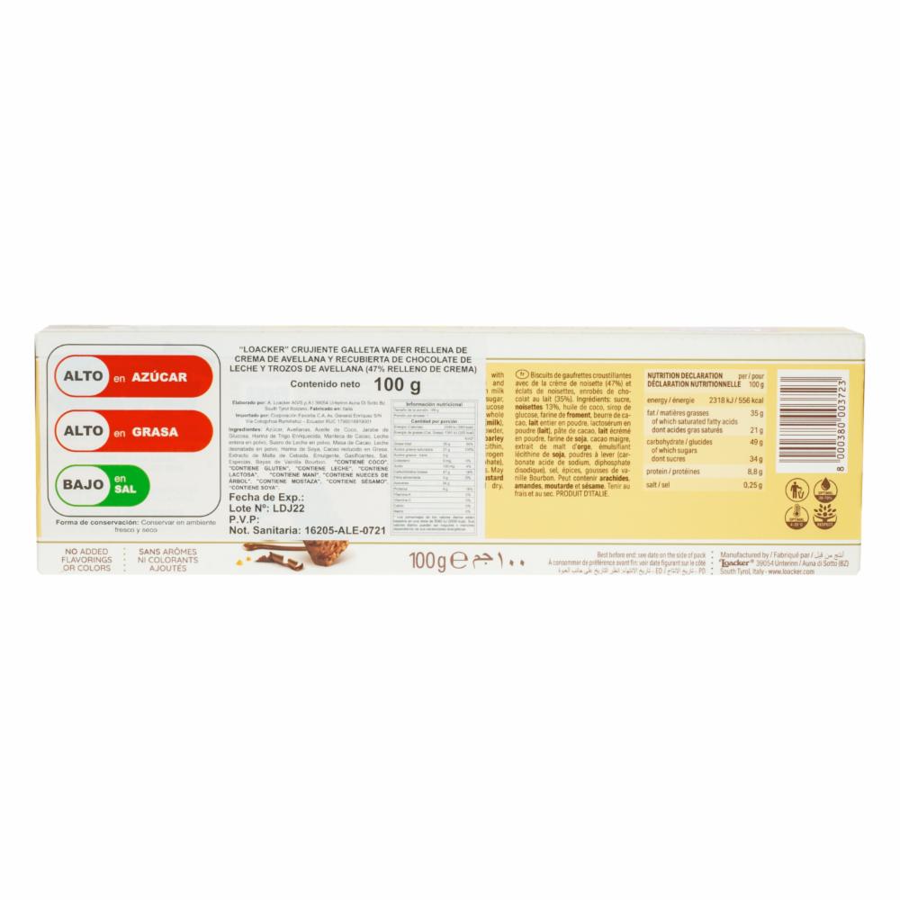 Galletas italianas wafer con Crema de Chocolate Loacker están hechas con una mezcla exclusiva de cacao y chocolate y contienen 75% de relleno de crema, además no contienen colorantes ni grasas hidrogenadas, su sabor es natural