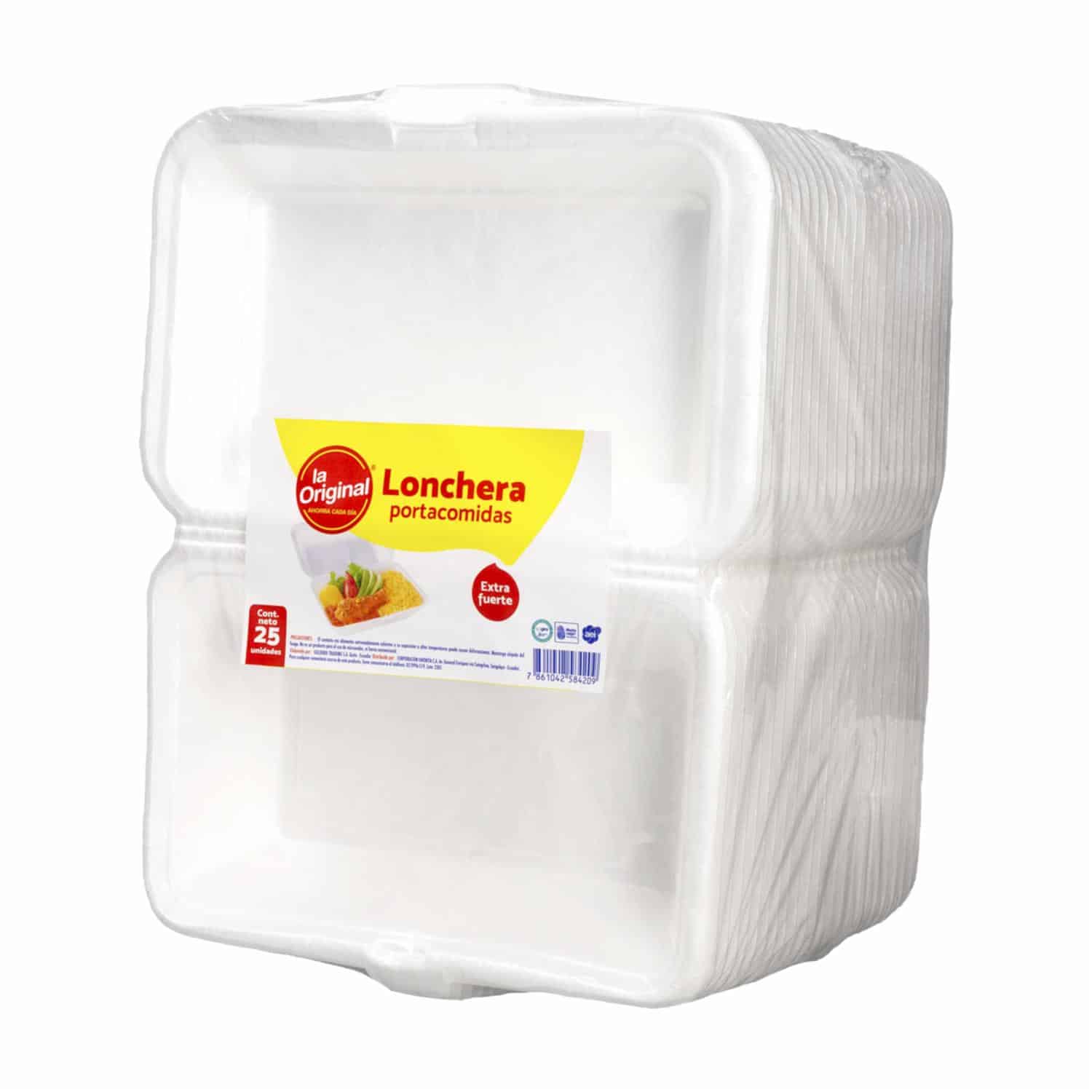 • Es un conjunto de 25 unidades de loncheras desechables diseñadas para empacar y llevar alimentos de manera conveniente y práctica