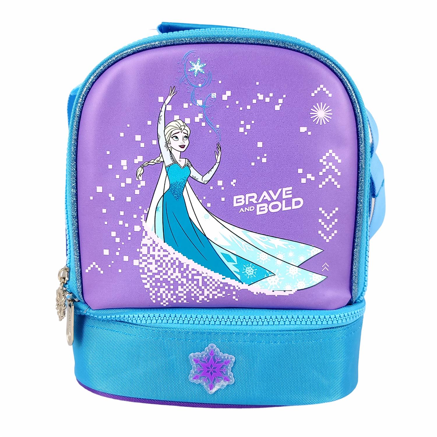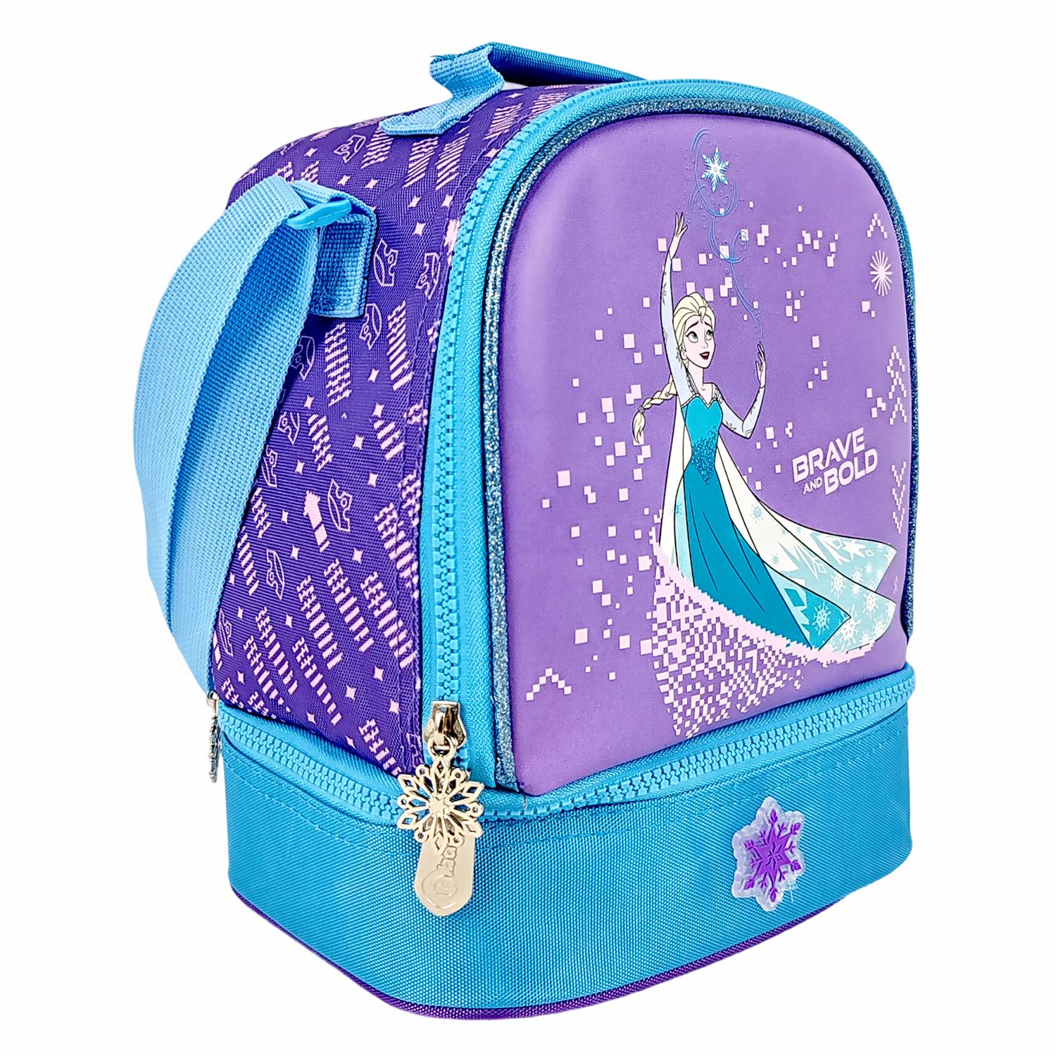 - Luce a Elsa en esta lonchera de 2 pisos con acabado metalizado. El interior impermeable y lavable protege su contenido. Incluye marcador posterior y cómodas cargaderas. 100% Original PRIMAVERA