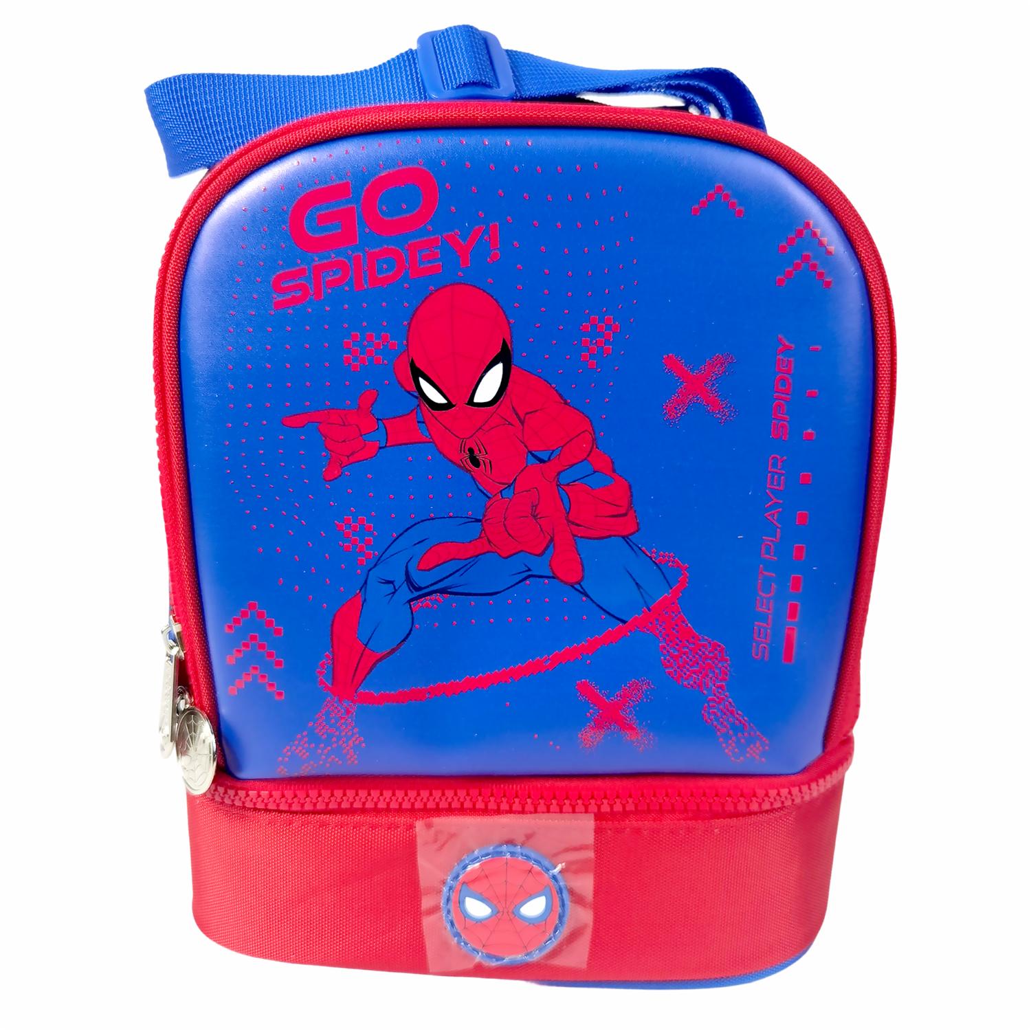 - Diseñada para fans de Spiderman, esta lonchera de 2 pisos combina funcionalidad y diseño. Con impresión PU metalizado, forro interno impermeable y espacio para marcar, es ideal para el uso diario. Cómoda de llevar gracias a sus cargaderas en reata. 100% Original PRIMAVERA