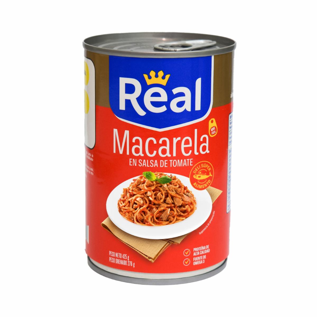 consultando preciosMacarela En Salsa De Tomate REAL 425 G – REAL. Disponible en nuestros locales. Precio y stock pueden variar según la tienda.