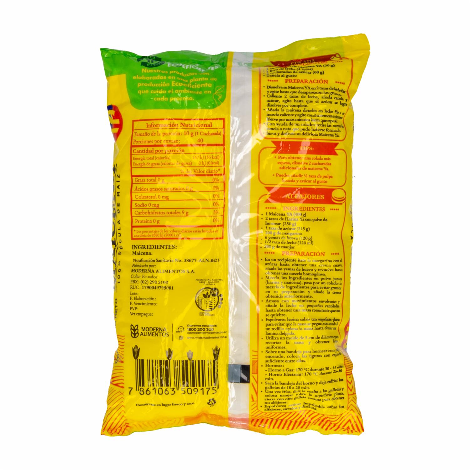 Maicena Natural YA 400 G – YA. Disponible en nuestros locales. Precio y stock pueden variar según la tienda.