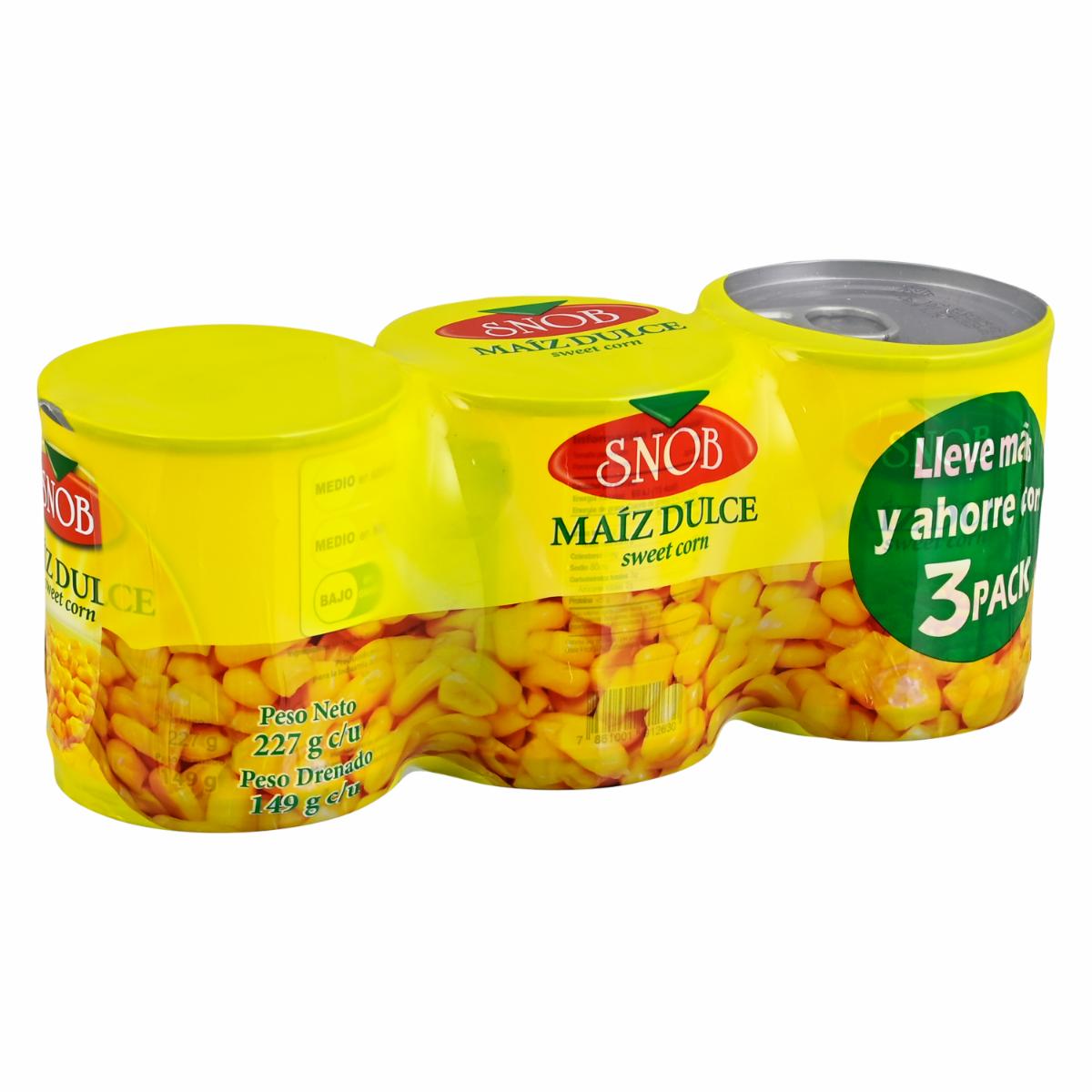 consultando preciosMaíz Dulce 3Pack SNOB Lata – SNOB. Disponible en nuestros locales. Precio y stock pueden variar según la tienda.
