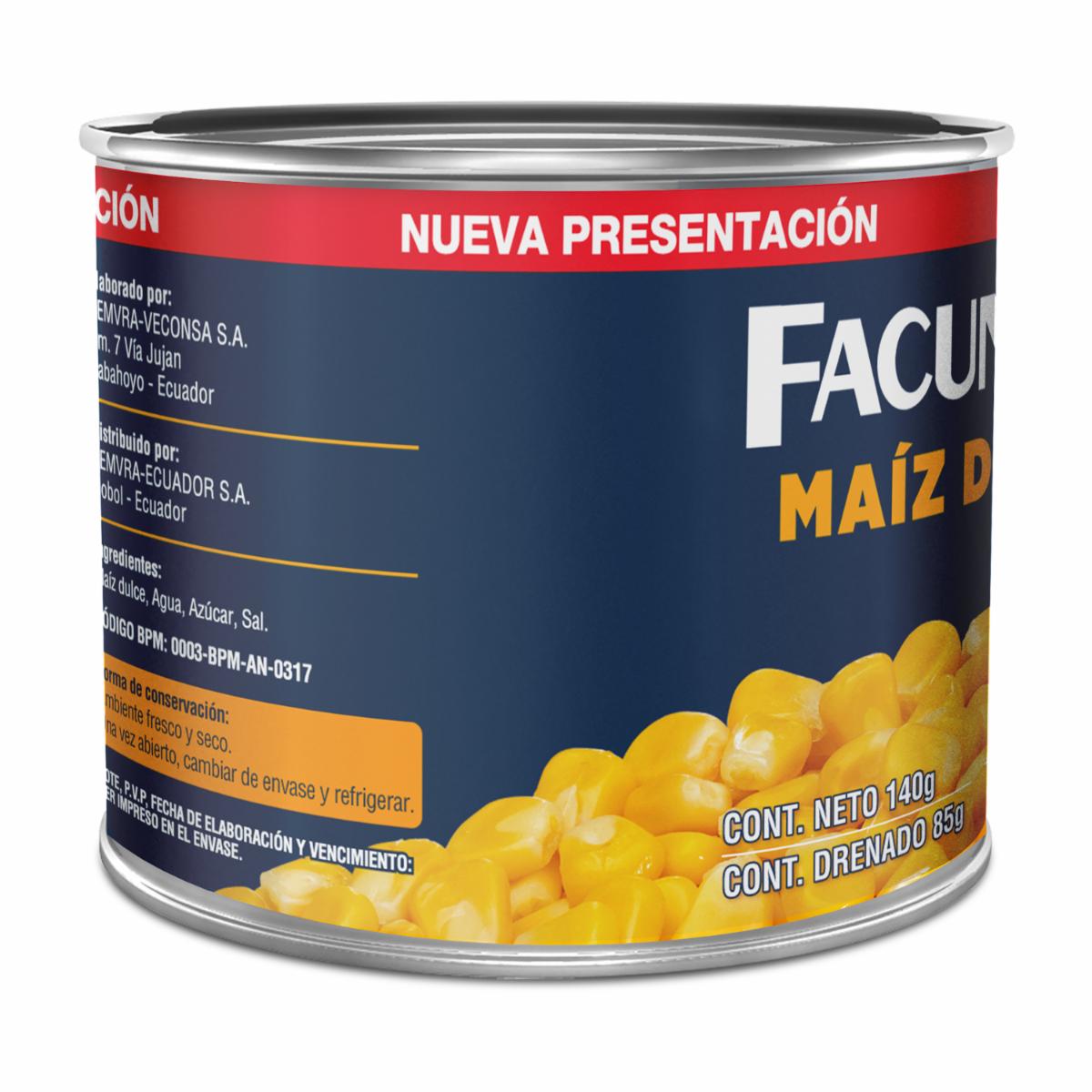 Maíz Dulce Tradicional FACUNDO 140 G – FACUNDO. Disponible en nuestros locales. Precio y stock pueden variar según la tienda.