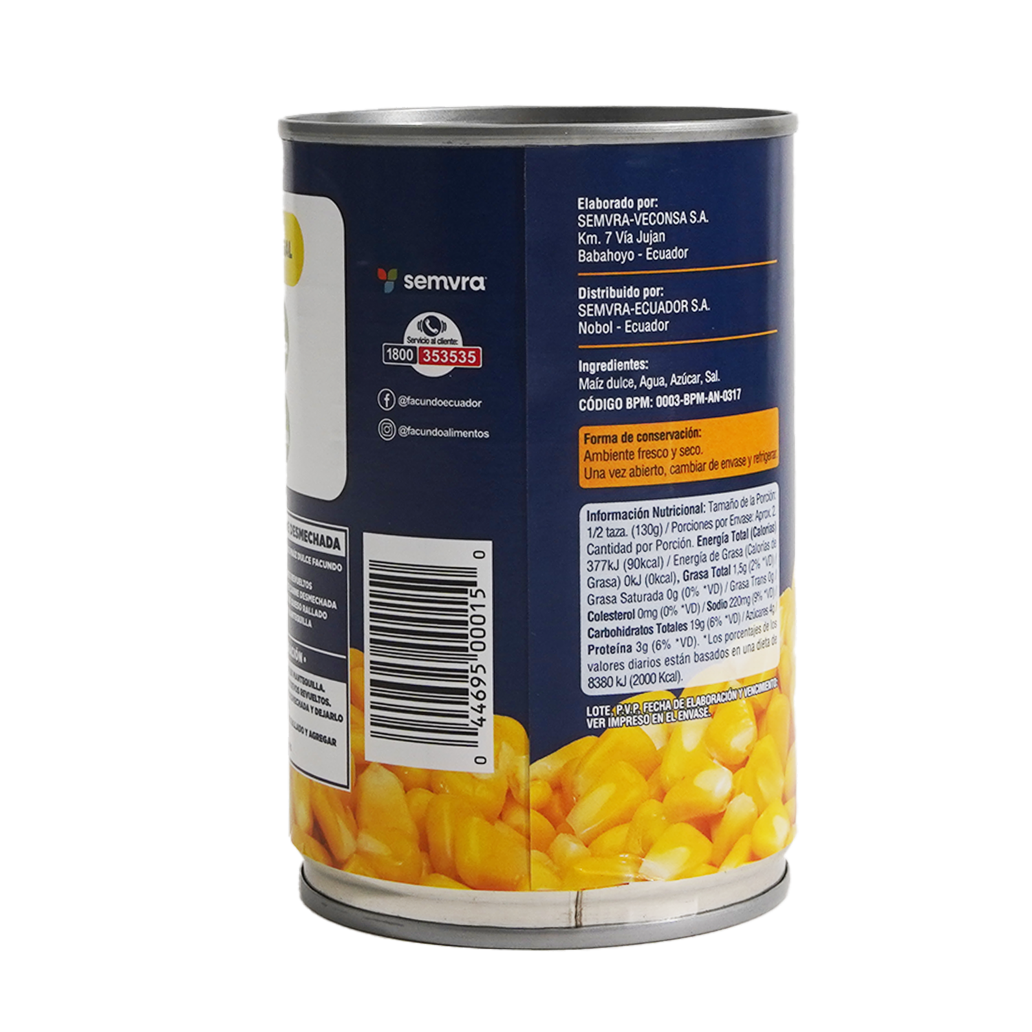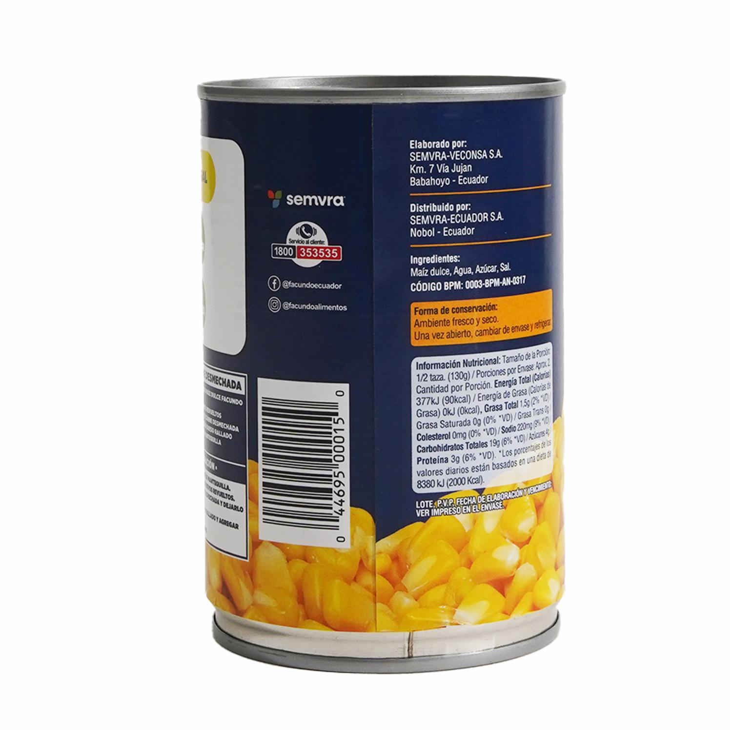 Maíz Dulce Tradicional FACUNDO 425 G – FACUNDO. Disponible en nuestros locales. Precio y stock pueden variar según la tienda.