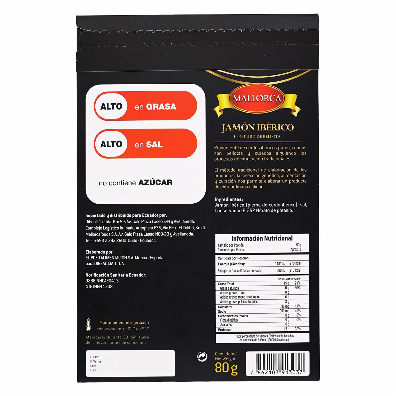 consultando preciosJamón Ibérico MALLORCA 80g – MALLORCA. Disponible en nuestros locales. Precio y stock pueden variar según la tienda.