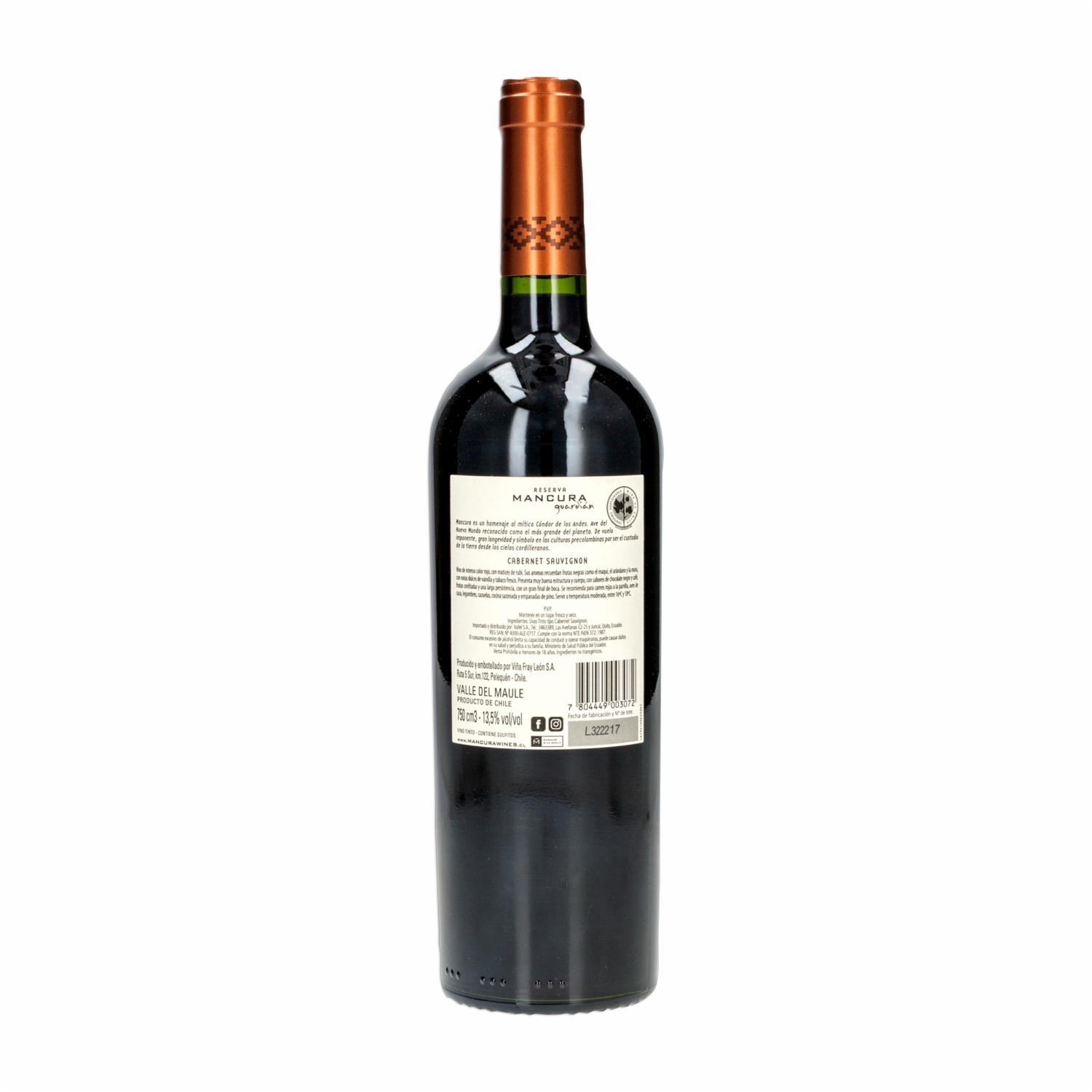 Vino Tinto Reserva Cabernet Sauvignon MANCURA 750 Ml