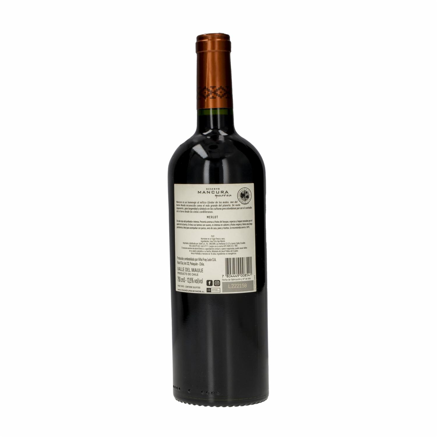 Vino Tinto Guardian Reserva Merlot Chileno MANCURA 750 Ml