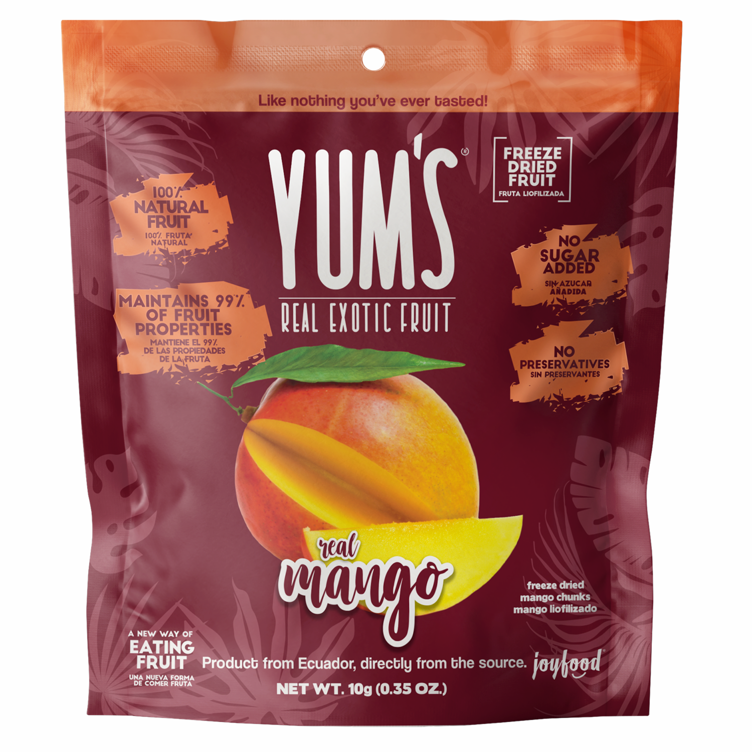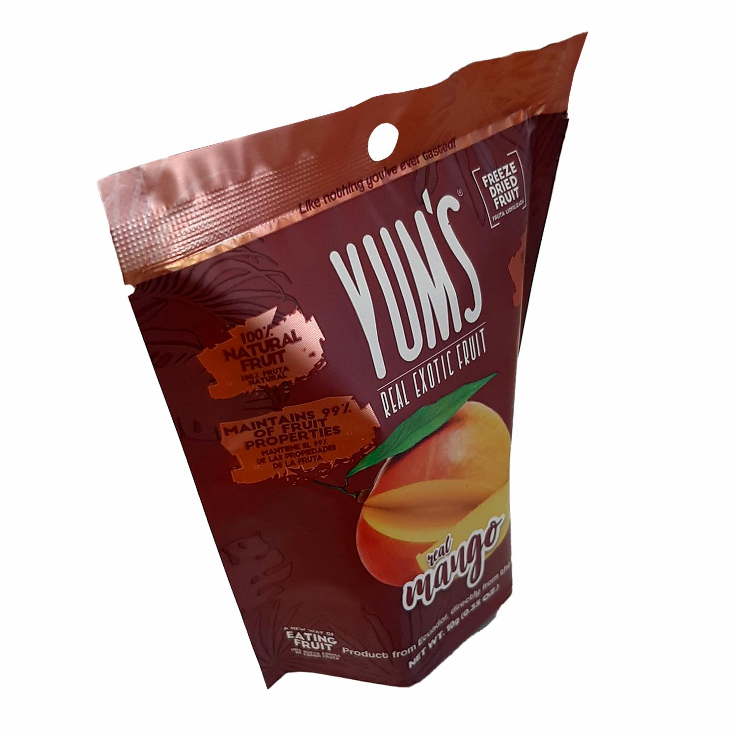 - El "mango Liofilizado Sin Gluten Yums 10 G" Es Una Porción De Mango Que Ha Sido Sometida A Un Proceso De Liofilización Para Conservar Su Sabor, Textura Y Nutrientes, Al Mismo Tiempo Que Se Elimina La Humedad Y Los Componentes No Deseados. Estas Porciones De Mango Liofilizado Son Un Snack Saludable Y Delicioso Que Es Especialmente Apreciado Por Su Sabor A Fruta Fresca Y Su Facilidad De Almacenamiento
