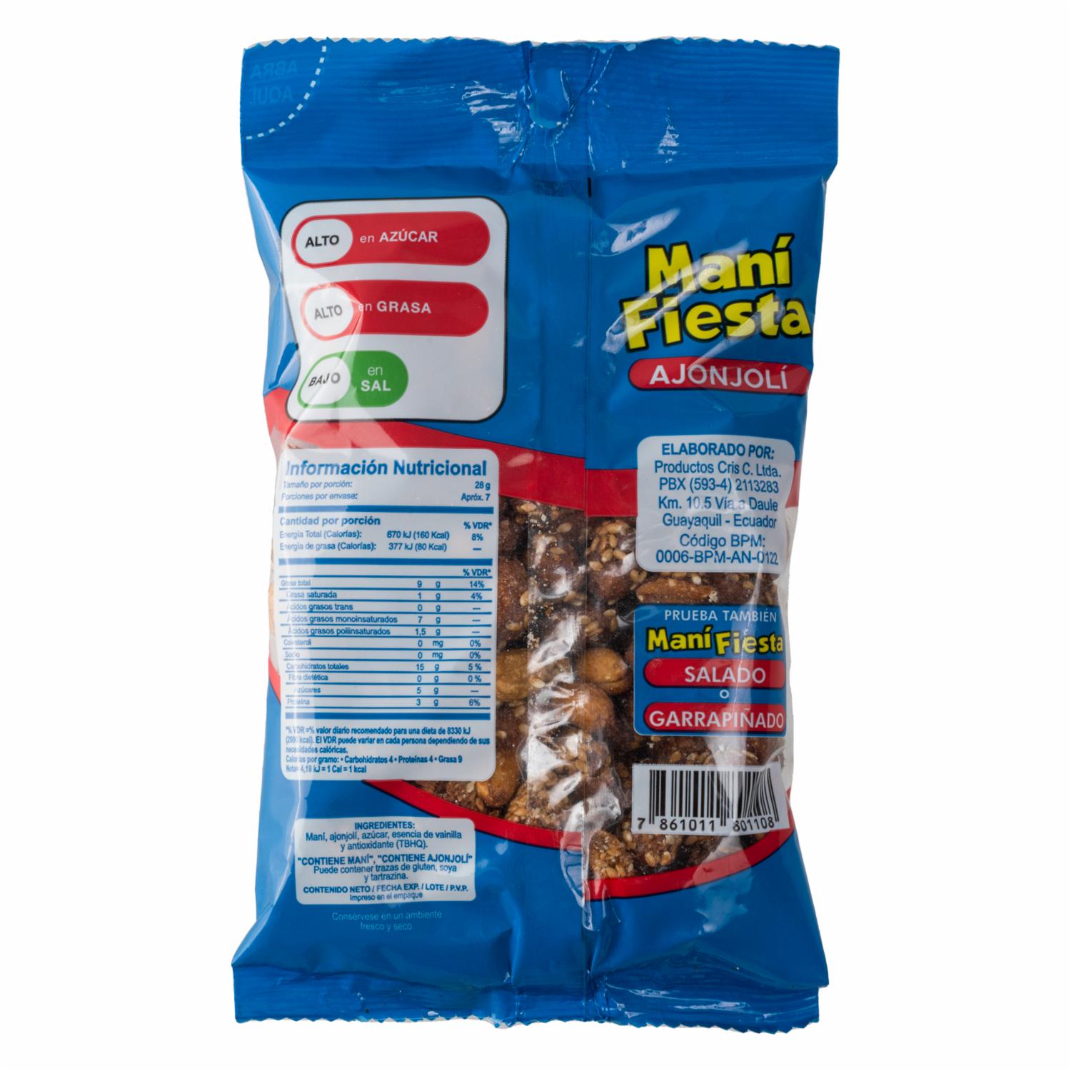 Maní Con Ajonjolí Fiesta MANÍ CRIS Funda