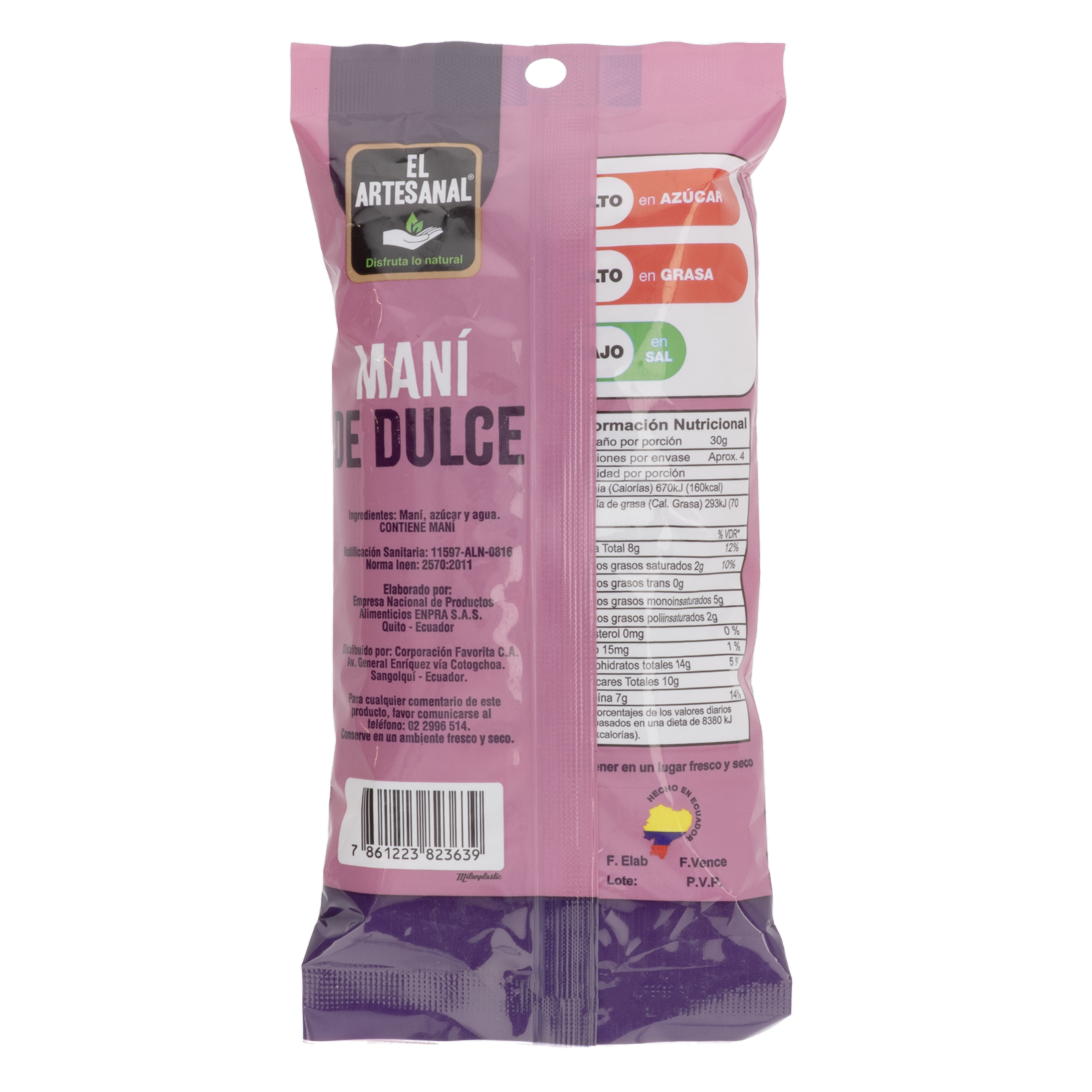 - Crujiente por fuera, suave por dentro y cubierto con una capa dulce que lo hace irresistible. El maní dulce EL ARTESANAL es el antojo perfecto para alegrar tu día. Ideal para compartir o darte un gusto en cualquier momento. ¡Sabe a tradición y a puro placer!