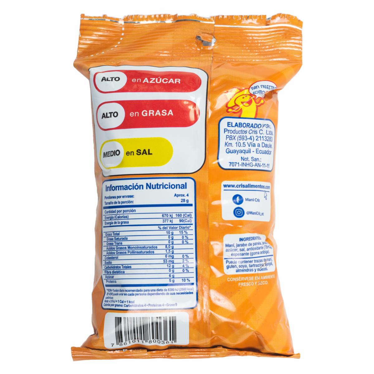 - Maní Melos de Maní-Cris ideal para disfrutar como snack. Elaborado con maní bañados en miel