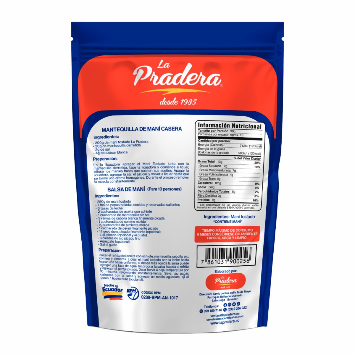 Maní Tostado Listo Y Sin Sal LA PRADERA 400 G