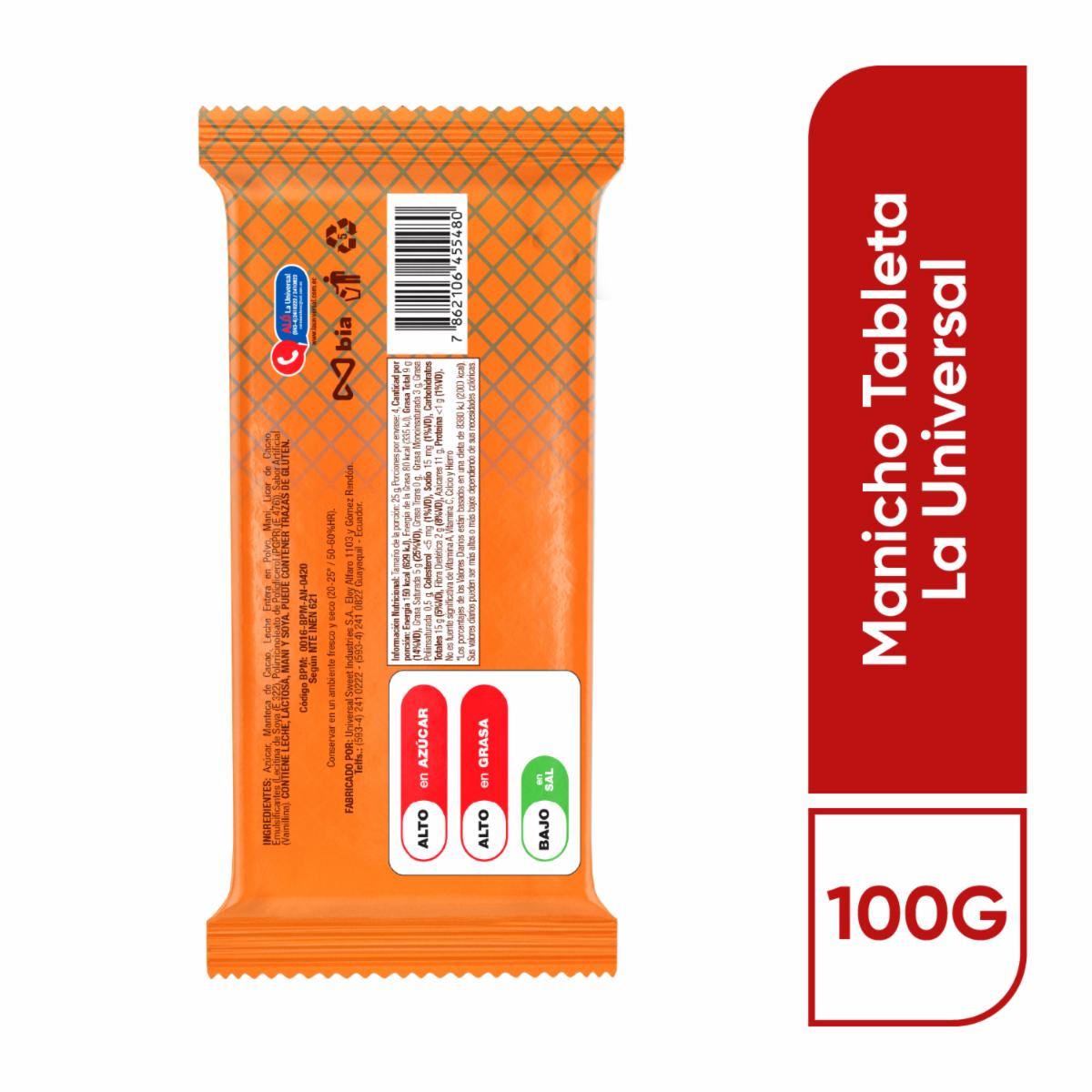 Chocolate En Tableta La Universal MANICHO 100 G – MANICHO. Disponible en nuestros locales. Precio y stock pueden variar según la tienda.