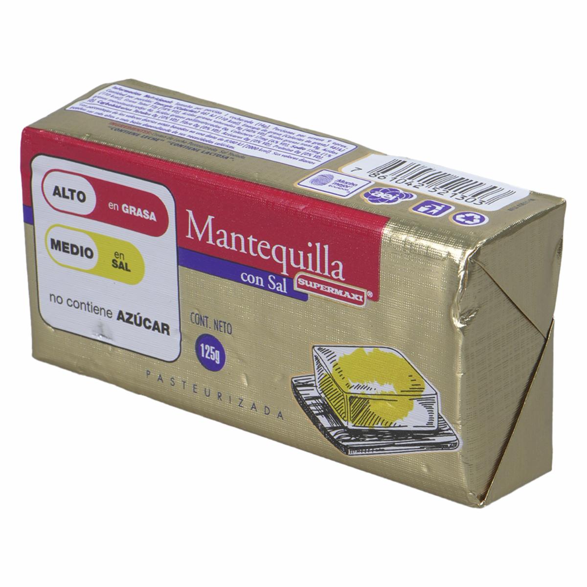Mantequilla Con Sal SUPERMAXI 125 G – SUPERMAXI. Disponible en nuestros locales. Precio y stock pueden variar según la tienda.