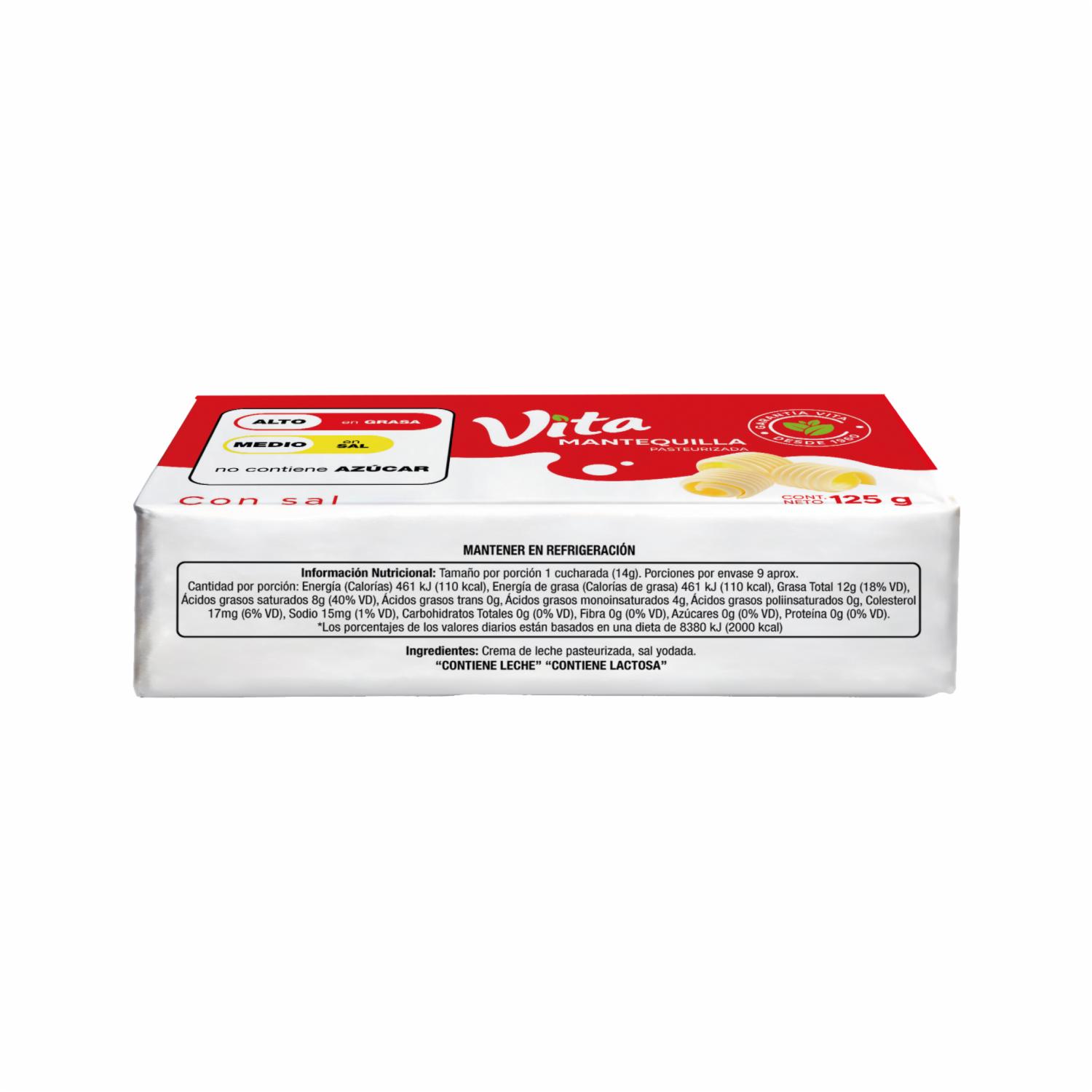 Mantequilla Con Sal VITA 125 G – VITA. Disponible en nuestros locales. Precio y stock pueden variar según la tienda.
