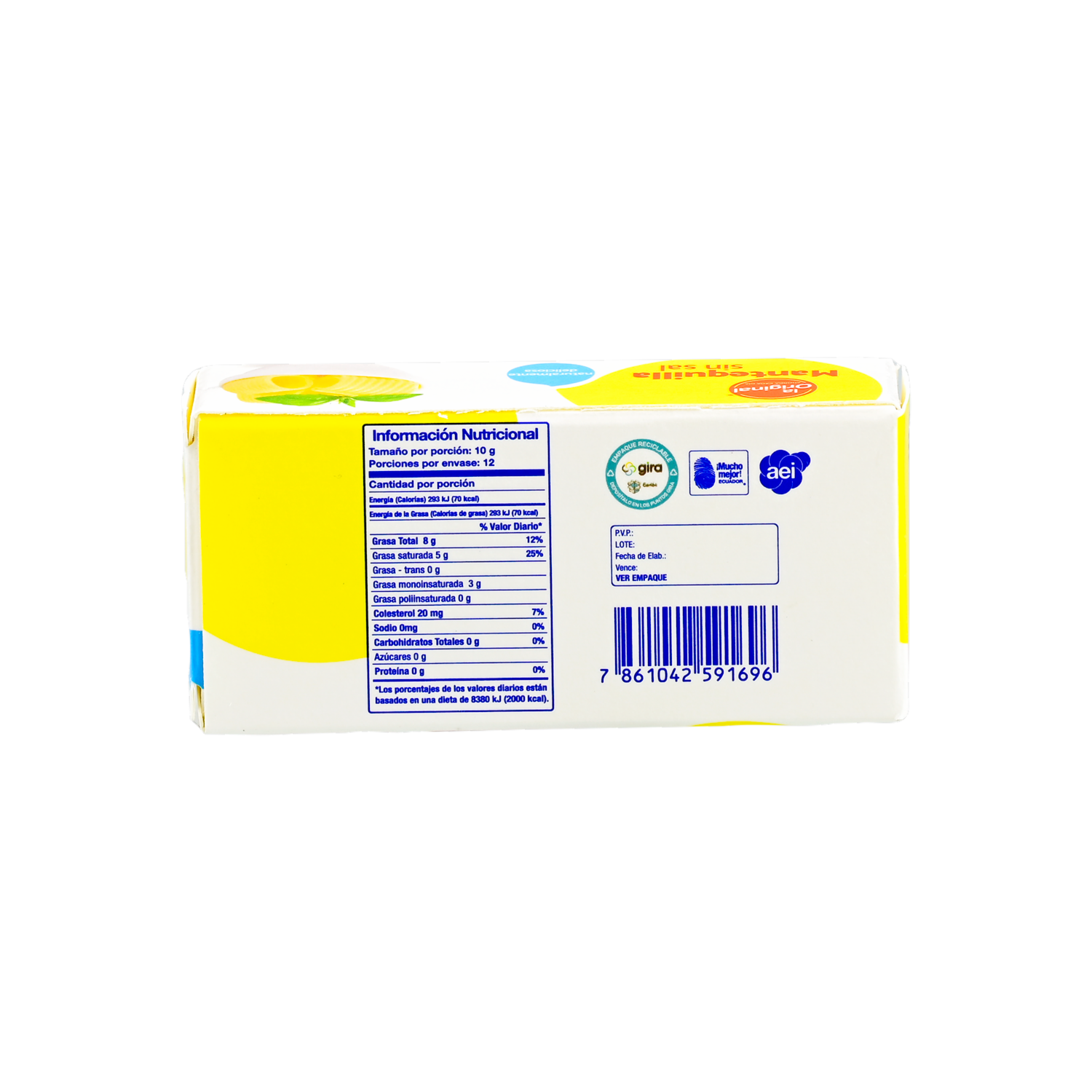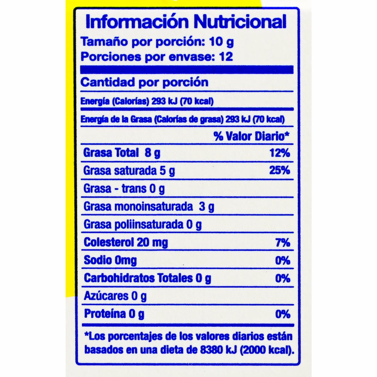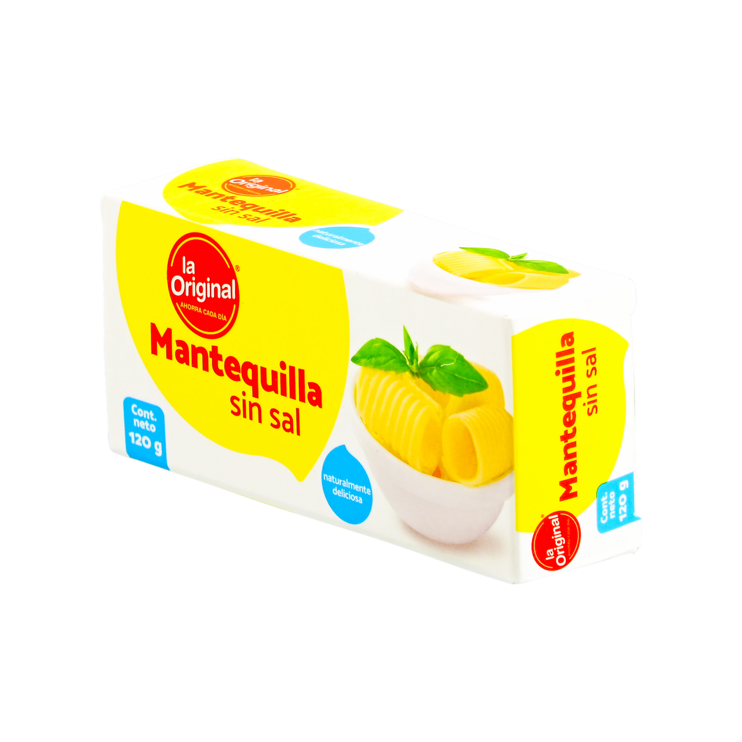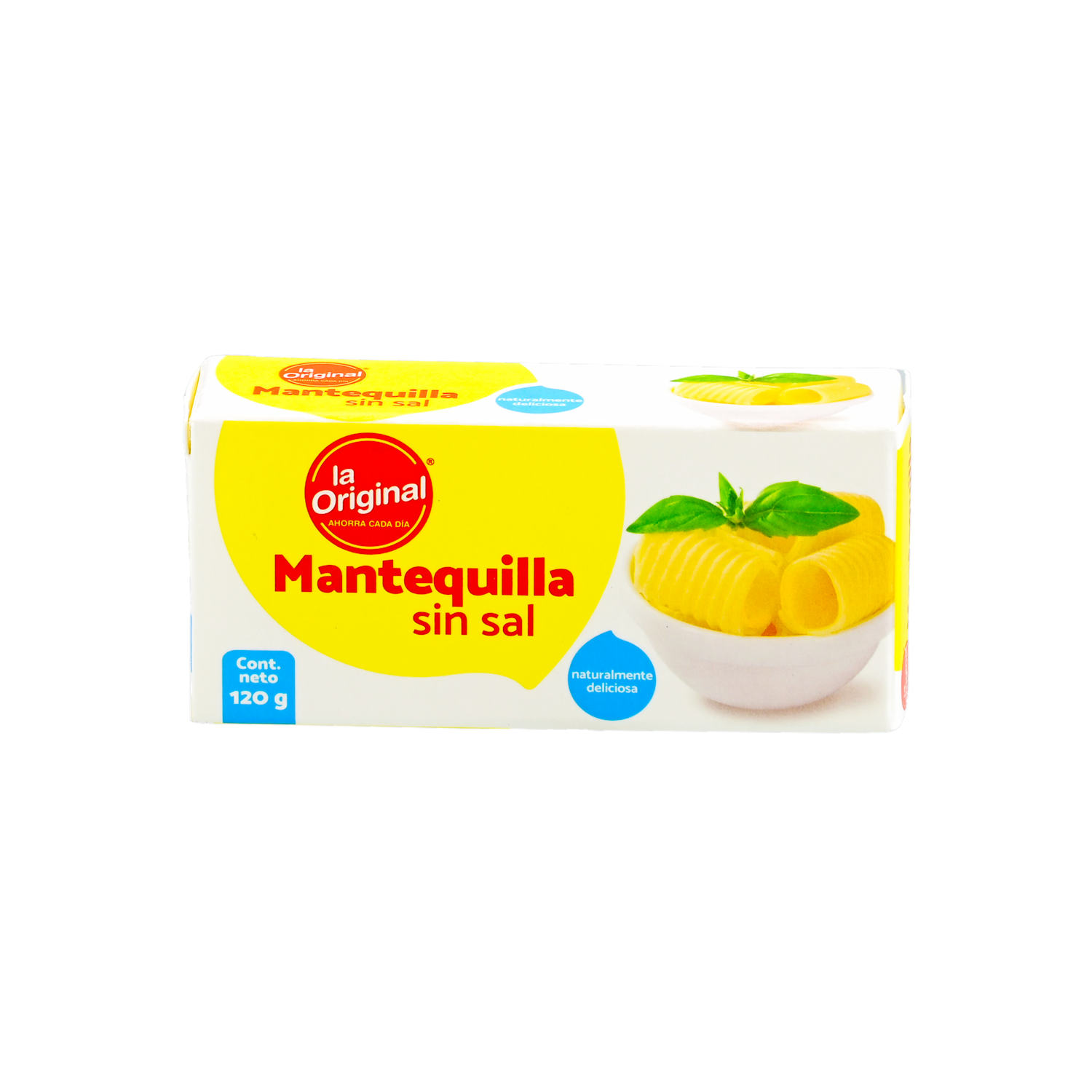 - La Mantequilla sin Sal de LA ORIGINAL, en una presentación de 120 g, es una opción ideal para quienes prefieren controlar su consumo de sodio o desean agregar su propio toque de sal a sus preparaciones