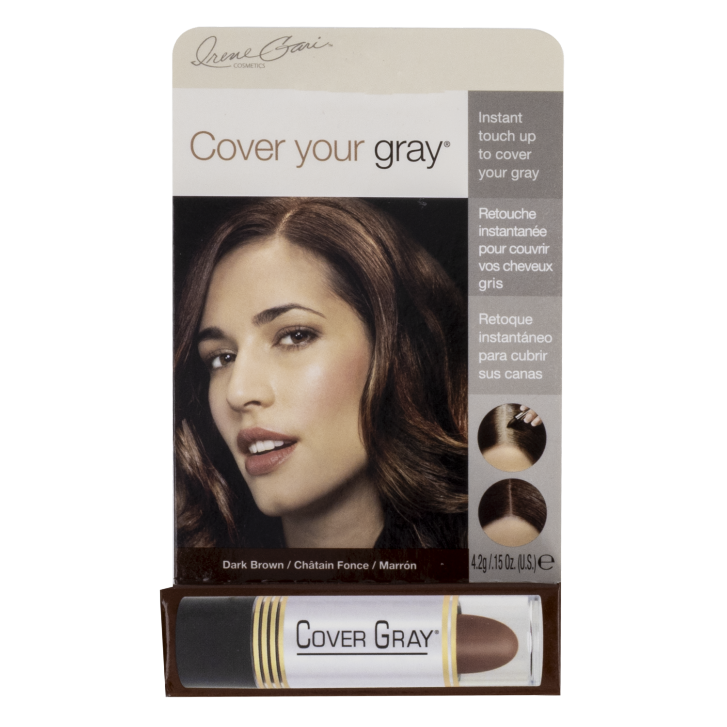 - El Maquillaje De Canas Cover Your Gray Stick Castaño Oscuro de la marca Irene Gari es un producto diseñado para cubrir las canas de forma temporalSu presentación en forma de barra permite una aplicación precisa y fácil en las raíces del cabelloEste maquillaje de canas es ideal para aquellas personas que desean cubrir temporalmente las canas y no desean teñir su cabello de forma permanenteAdemás,