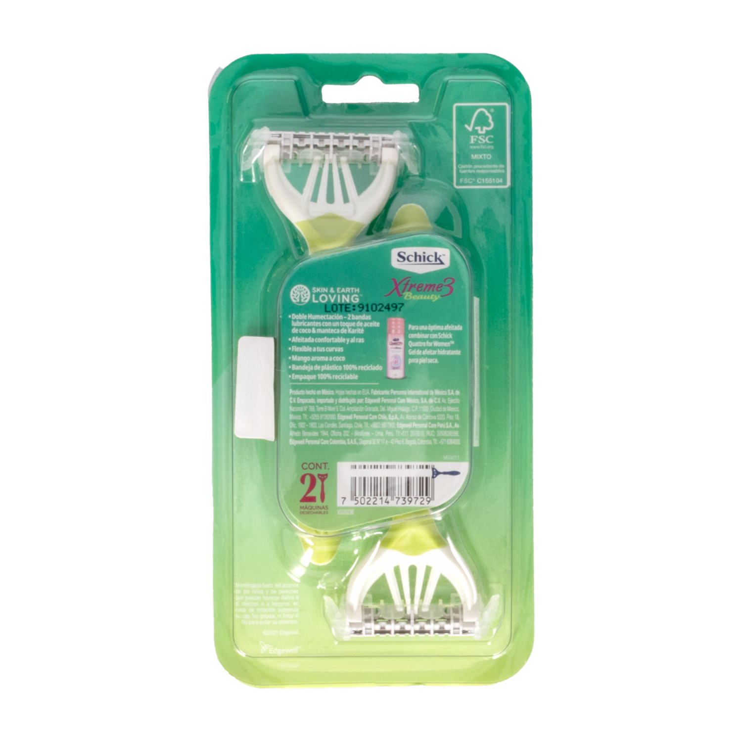 Razuradora Desechable Mujer Xtreme 3 Beauty Doble Humectación SCHICK X2 Uds