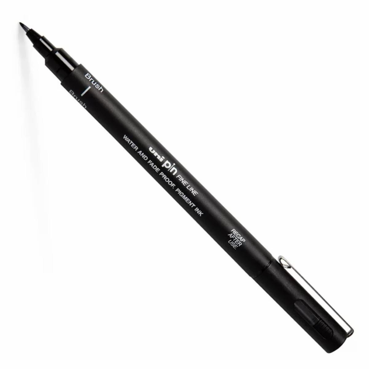 - El marcador Uni Pin Fine Line Brush Negro es un instrumento de escritura con punta de pincel y tinta negra de alta calidad