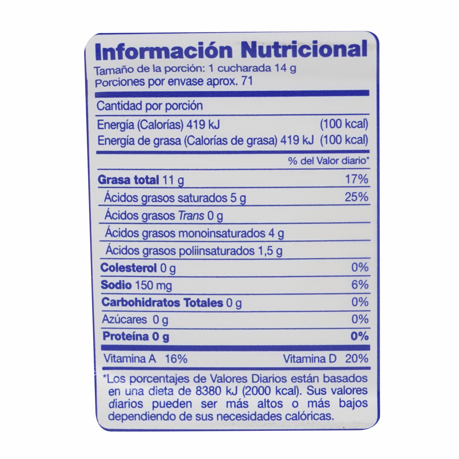- Hecha de aceites vegetales, por lo que contiene grasas insaturadas