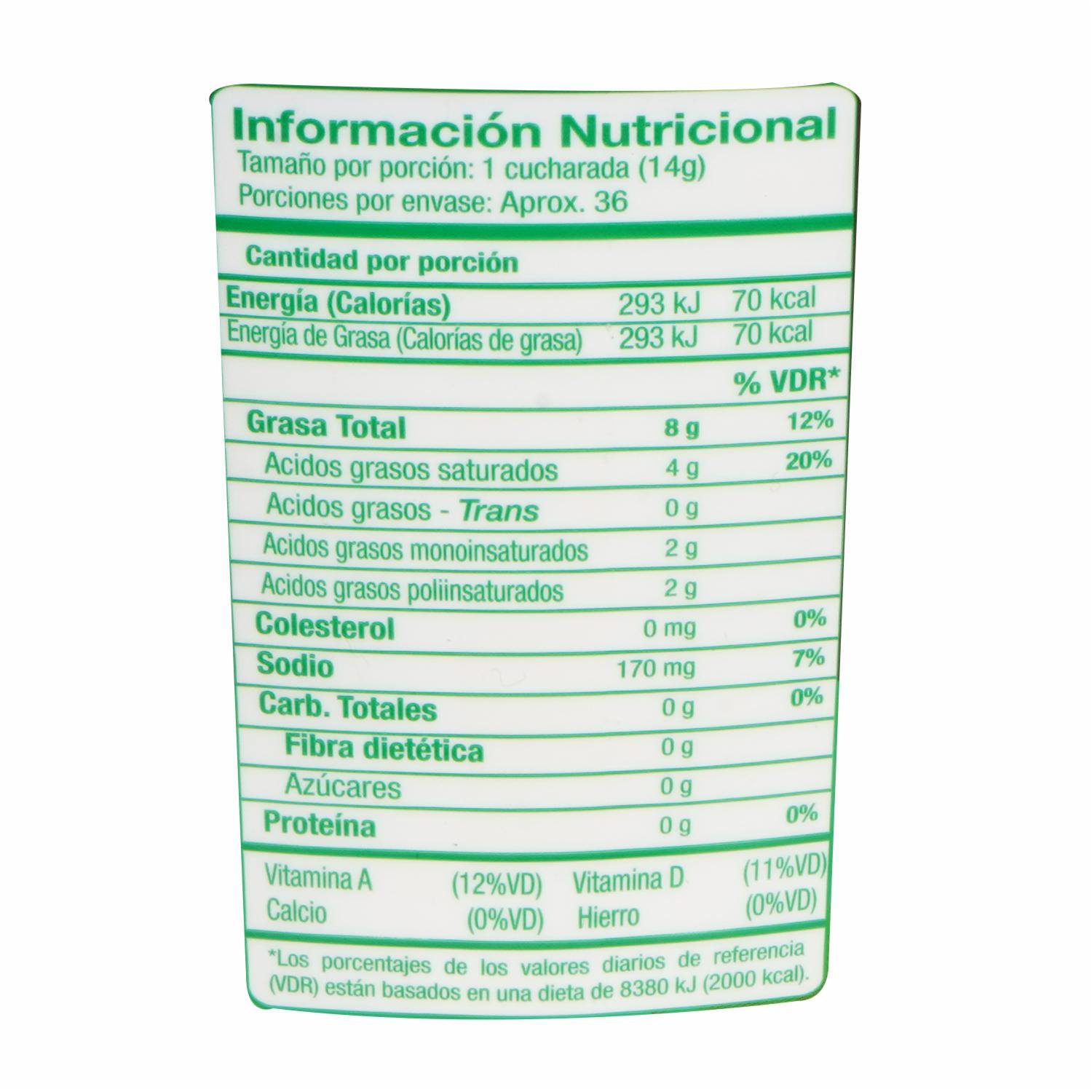 - Hecha de aceites vegetales, por lo que contiene grasas insaturadas
