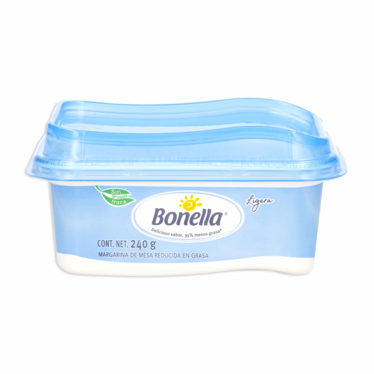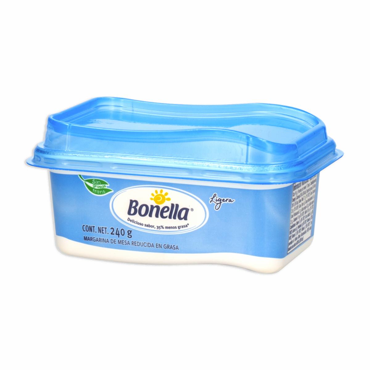 - Bonella® Ligera Te Trae Un Delicioso Sabor Con 25% Menos Grasa En Comparación Con Una Margarina De Mesa Tradicional. Elaborada A Partir De Aceites De Semillas De Plantas, Tiene 0% Colesterol Y Es Libre De Grasas Trans. Es Suave Y Fácil De Untar