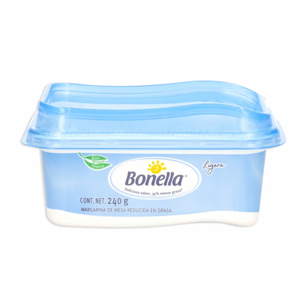 Bonella® Ligera Te Trae Un Delicioso Sabor Con 25% Menos Grasa En Comparación Con Una Margarina De Mesa Tradicional. Elaborada A Partir De Aceites De Semillas De Plantas, Tiene 0% Colesterol Y Es Libre De Grasas Trans. Es Suave Y Fácil De Untar