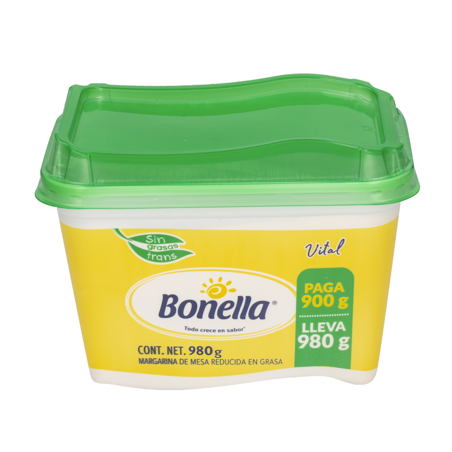 - La "margarina Vital Bonella 980 G" Es Un Producto Alimenticio Que Se Utiliza Como Sustituto De La Mantequilla En La Cocina Y La Repostería. La Margarina Es Una Grasa Vegetal Que Se Elabora A Partir De Aceites Vegetales Y Suele Tener Un Contenido Menor De Grasas Saturadas En Comparación Con La Mantequilla