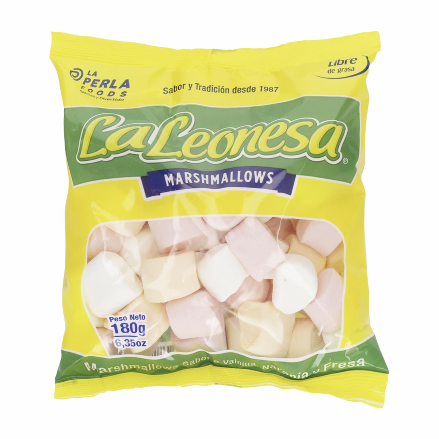 - Disfruta de la dulzura esponjosa de los Marshmallows Dulces de LEONESA en su presentación de 180 g. Estos malvaviscos ofrecen una textura suave y esponjosa, perfecta para ser disfrutados solos, como parte de postres o para dar un toque especial a tus bebidas calientes
