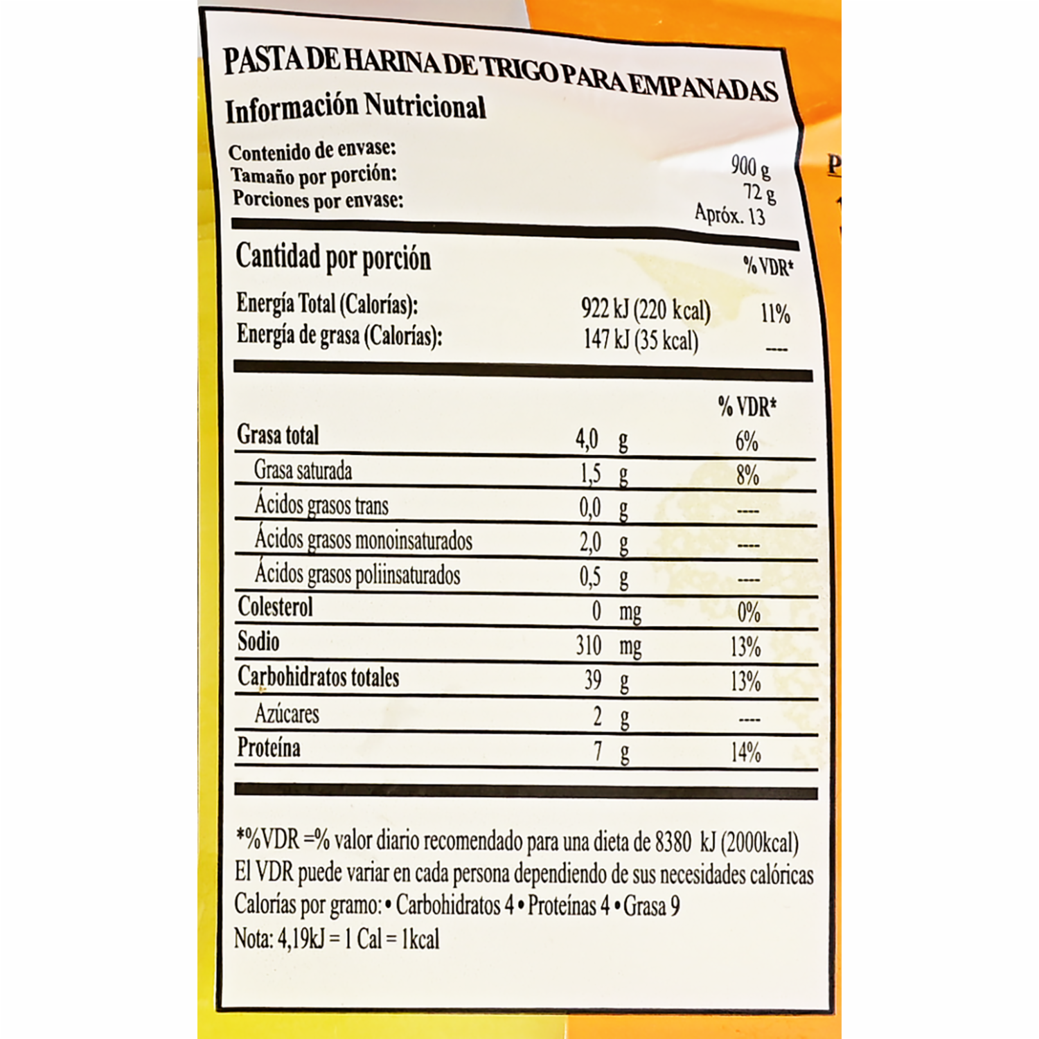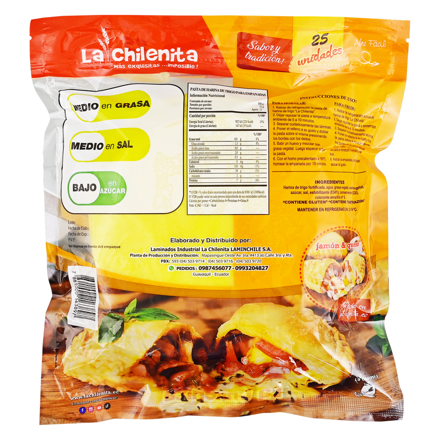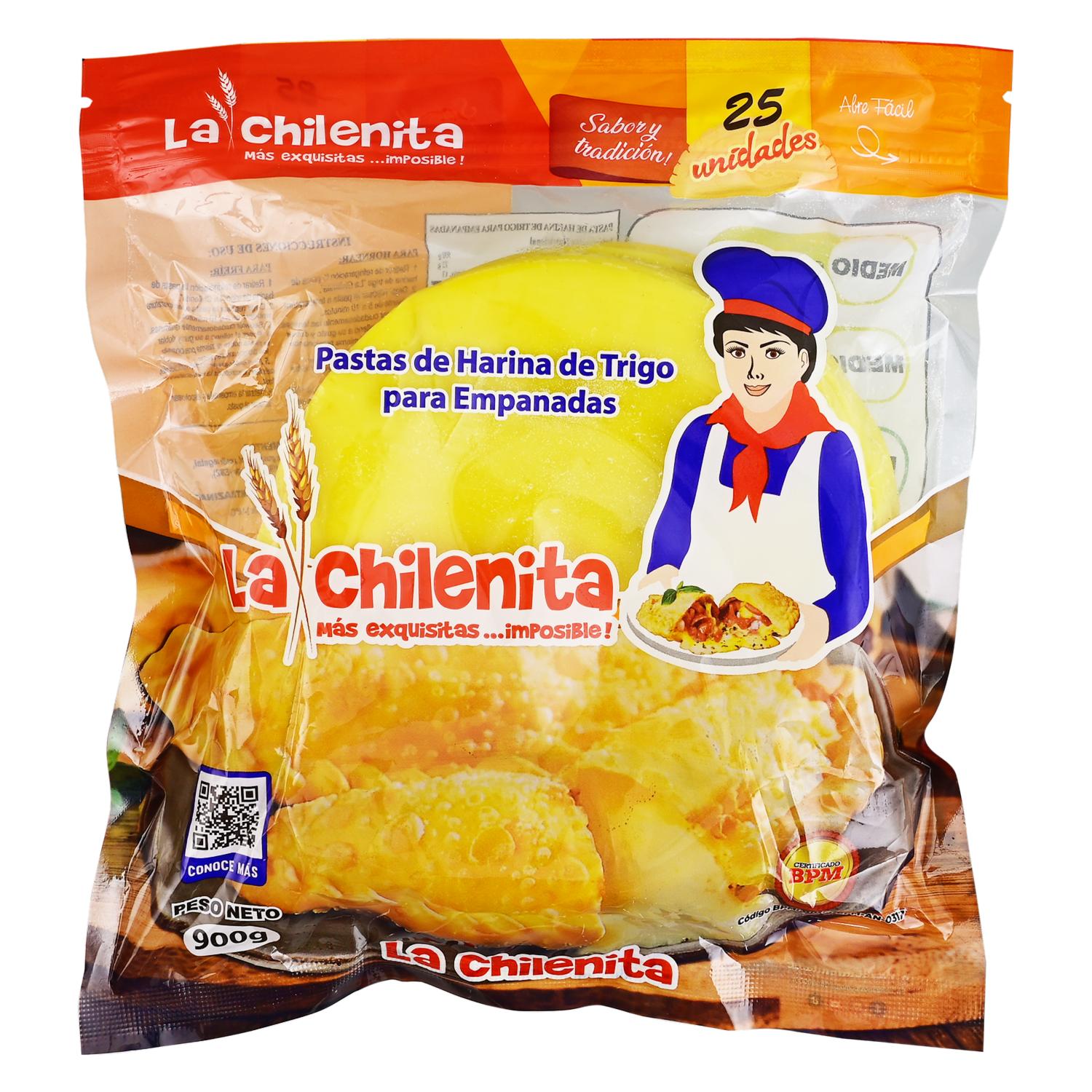 - Masa para empanadas de harina de trigo, contiene gluten y tartrazina, más exquisitas,¡imposible!