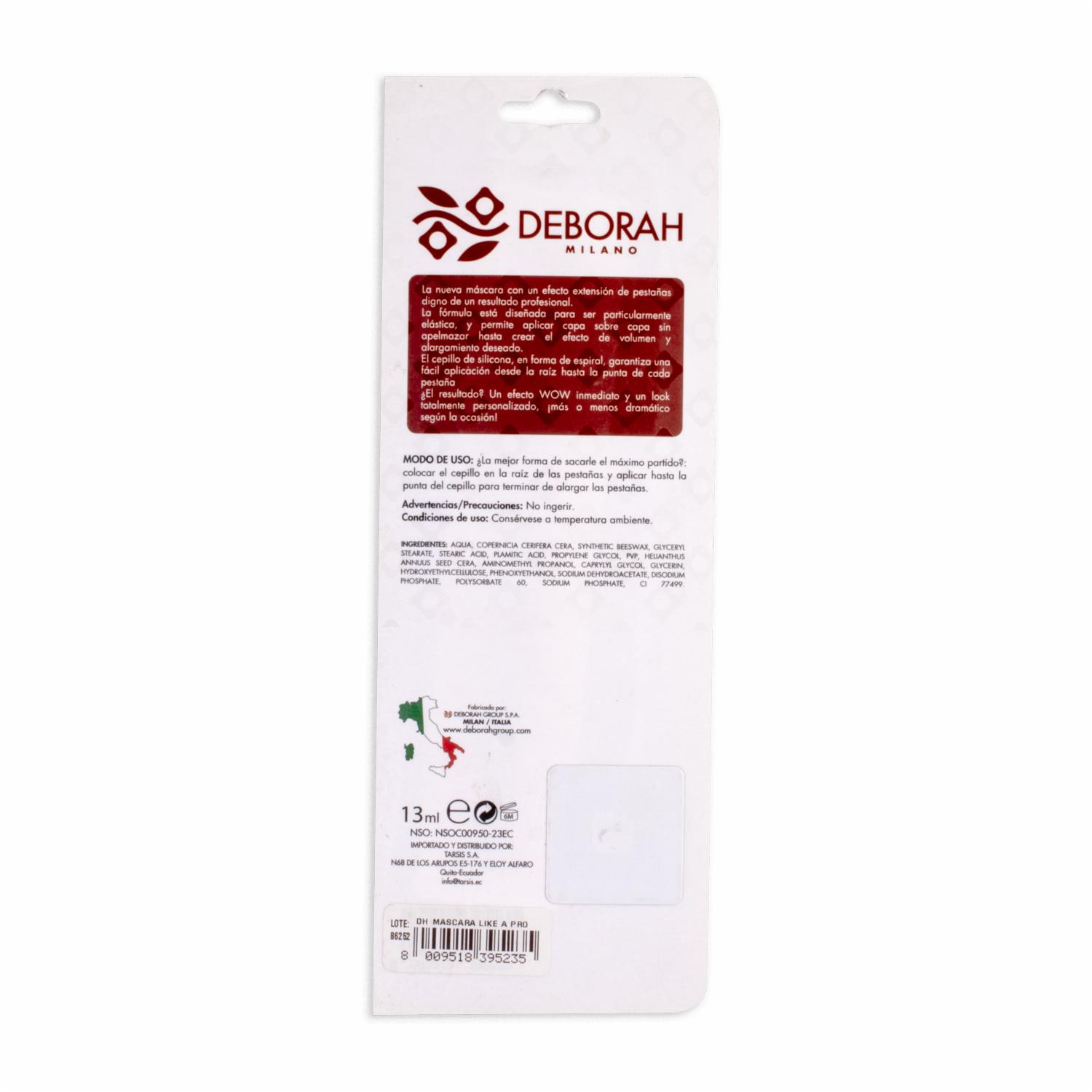 - La máscara de pestañas Like A Pro Negro de Deborah tiene las siguientes características: