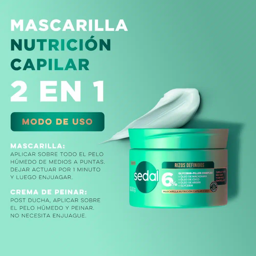 Crema para Peinar Sedal Rizos Definidos 300 g. Define y controla tus rizos, reduce el frizz y mantiene tu cabello hidratado y con movimiento natural todo el día. Ideal para rizos perfectos y duraderos