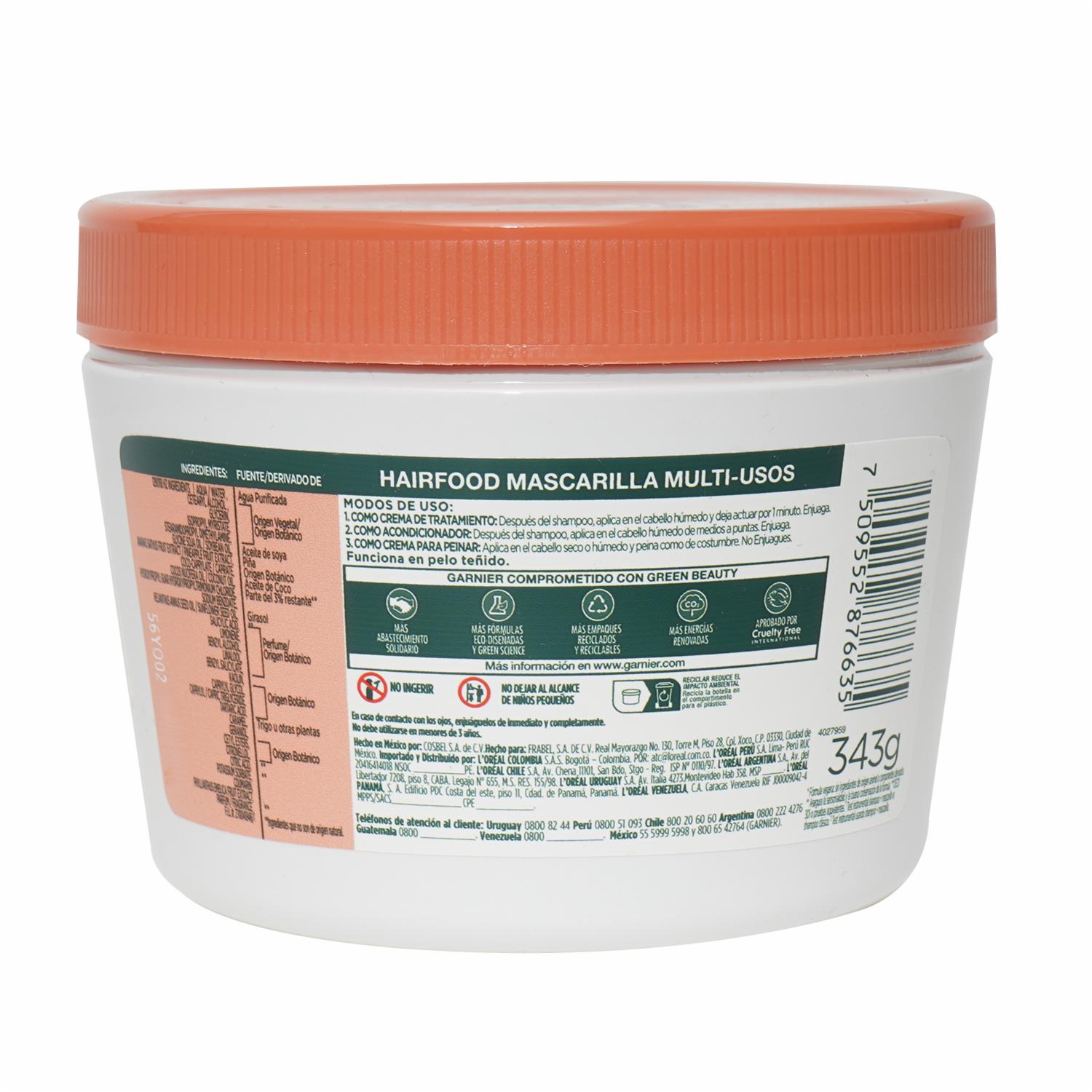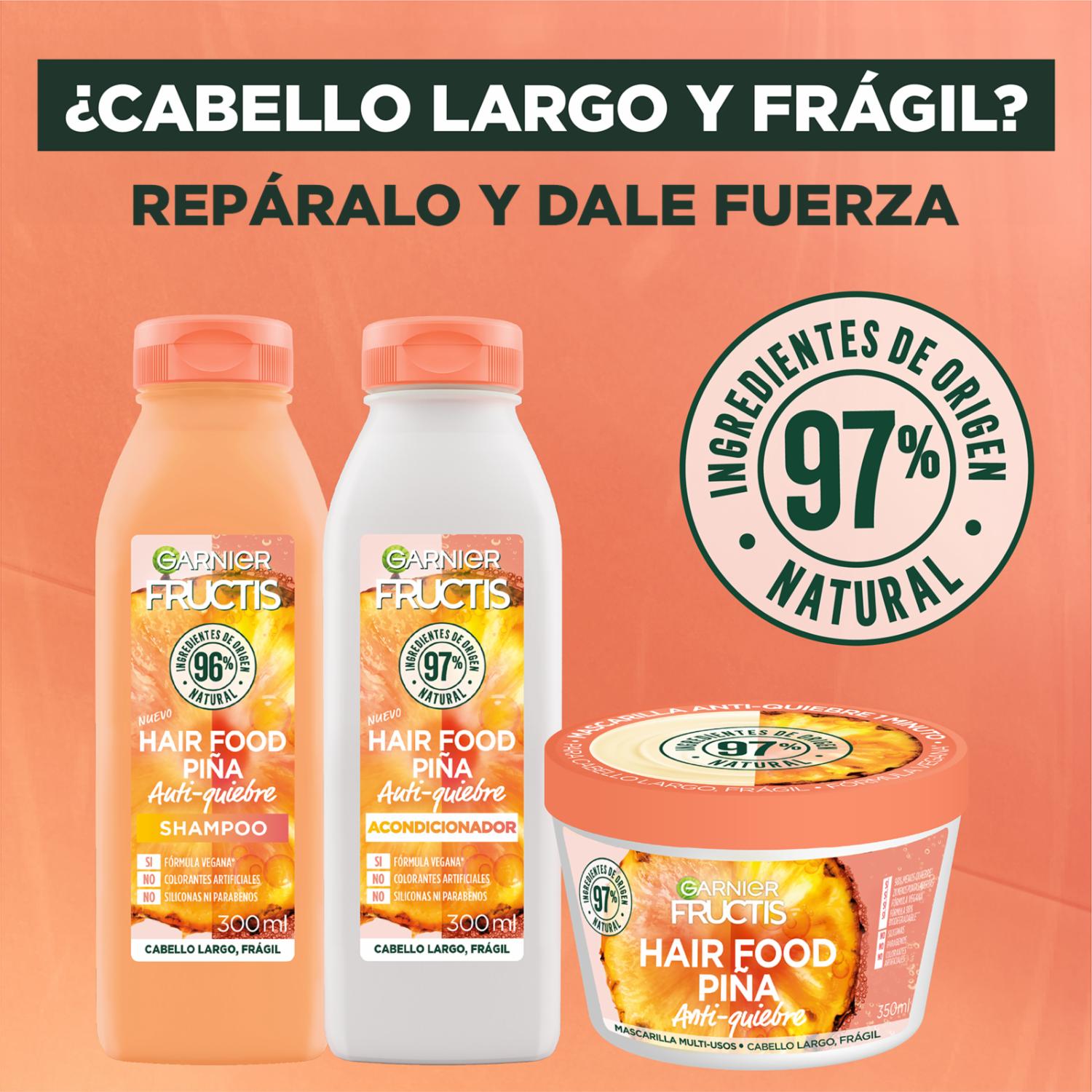 - Mascarilla Garnier Fructis Hair Food Piña 350ml anti-quiebre en solo 1 minuto ¡La nueva forma de alimentar tu pelo!