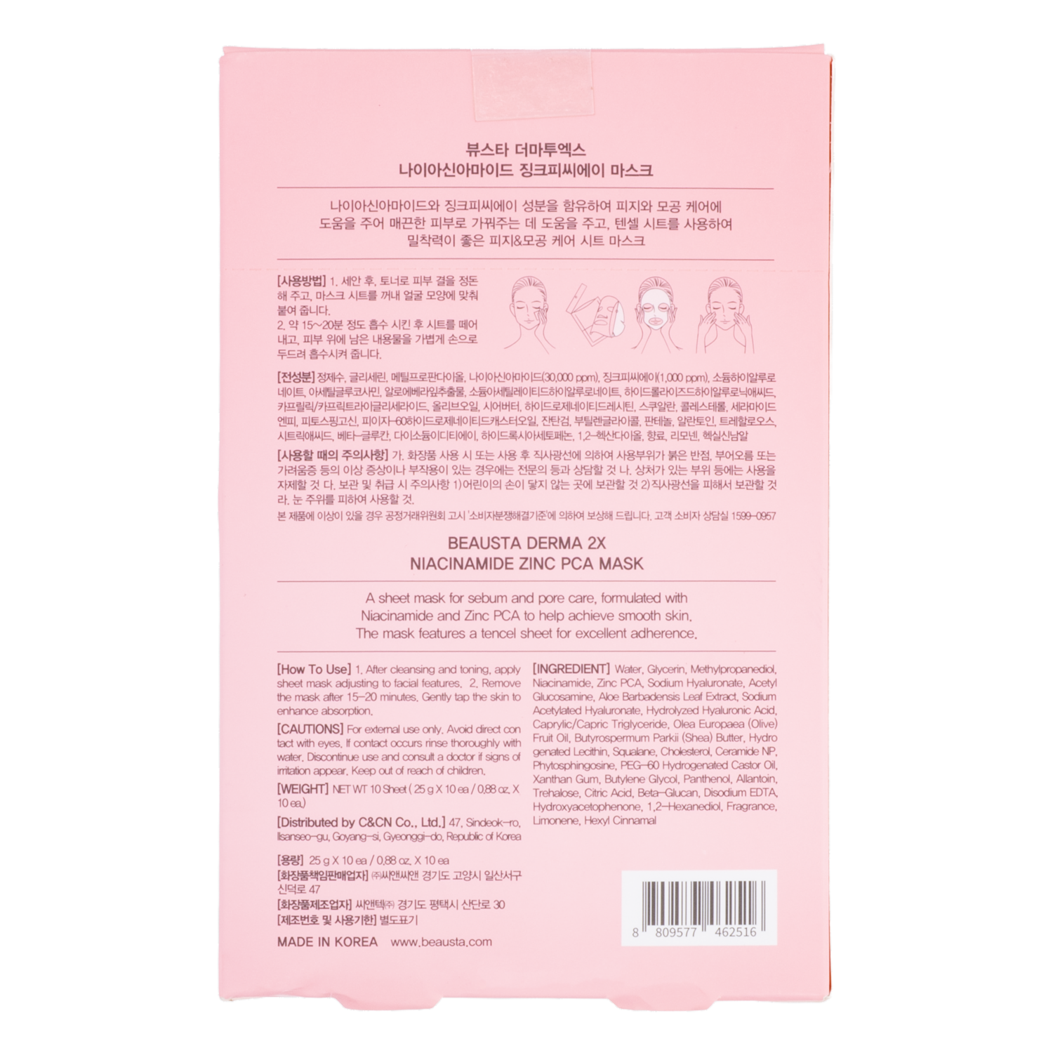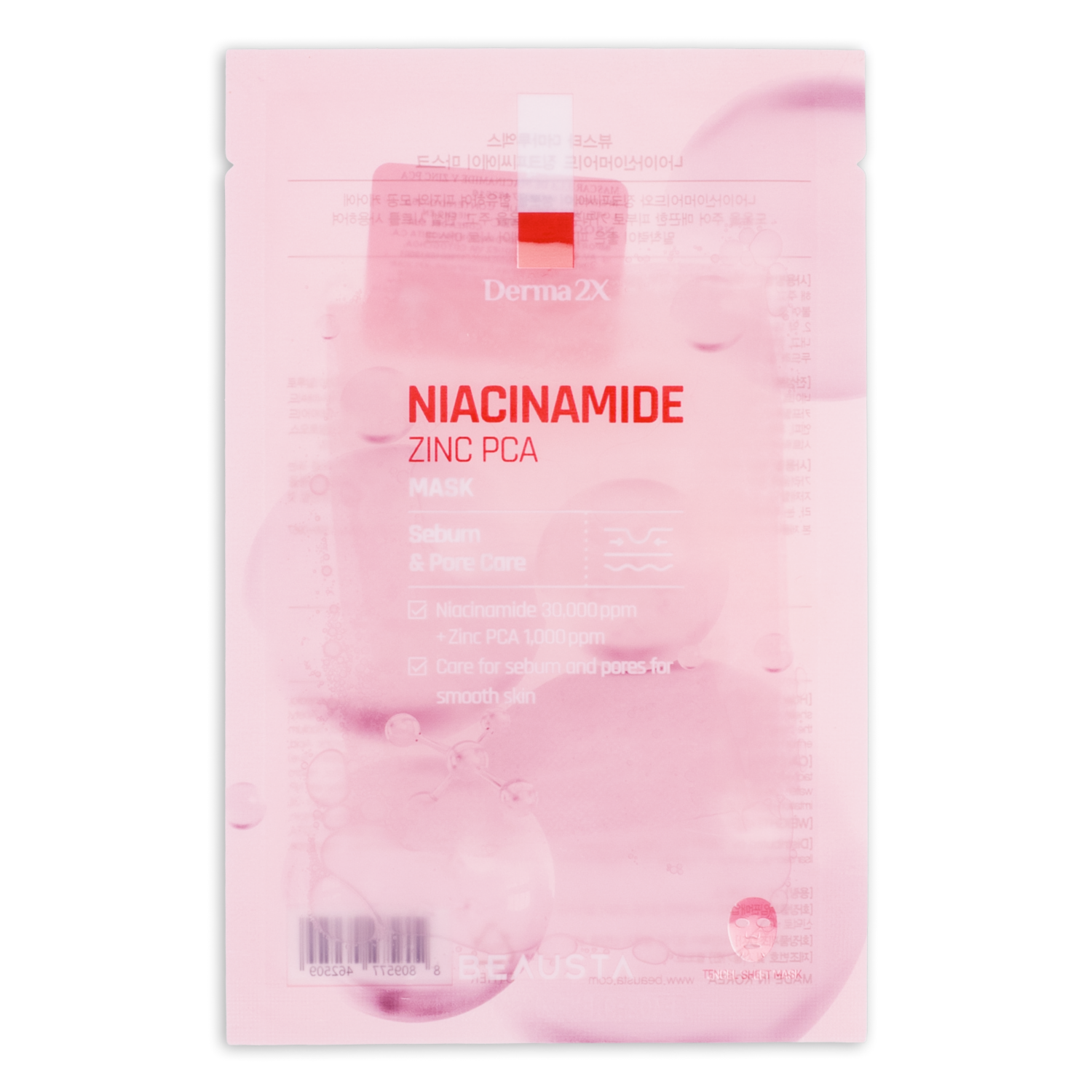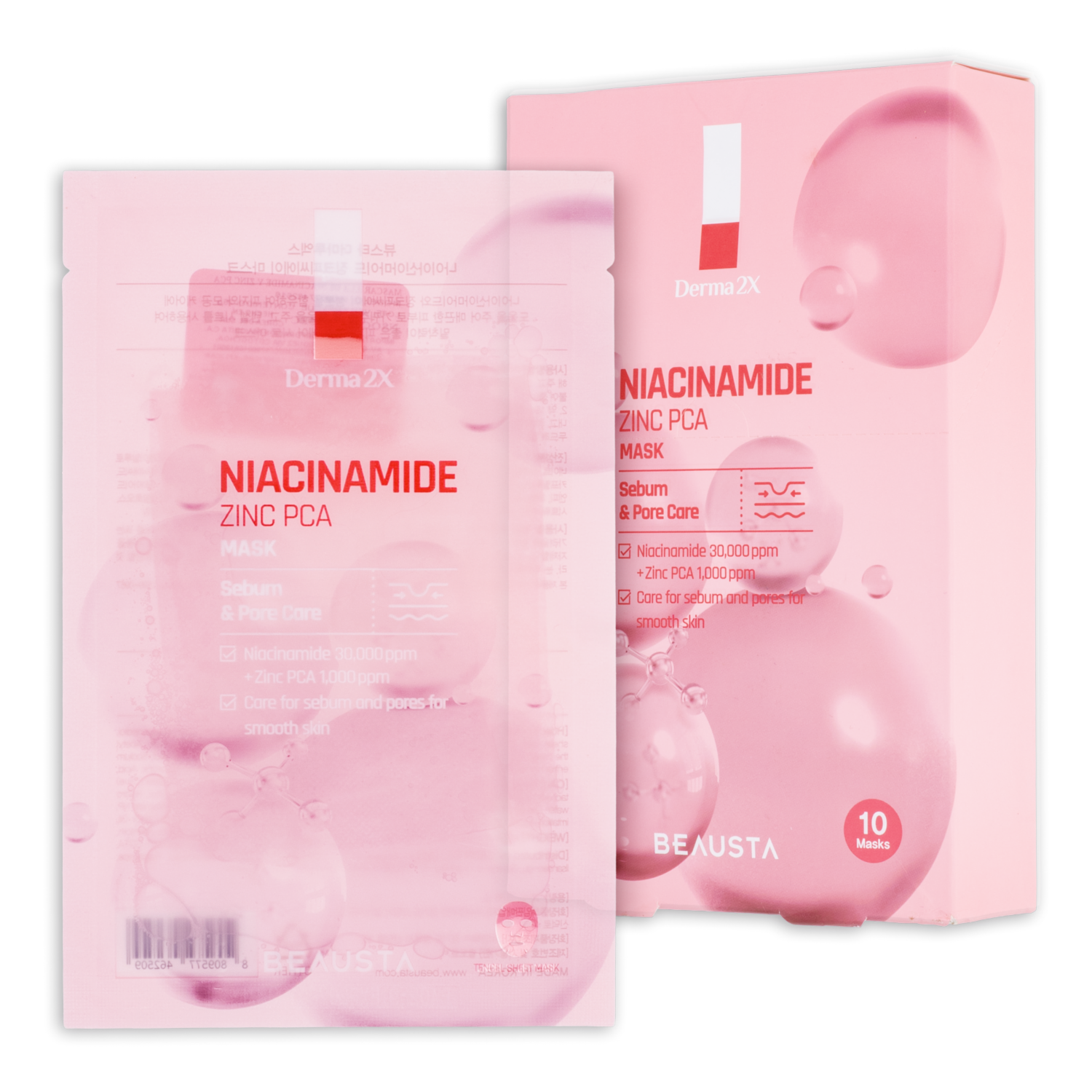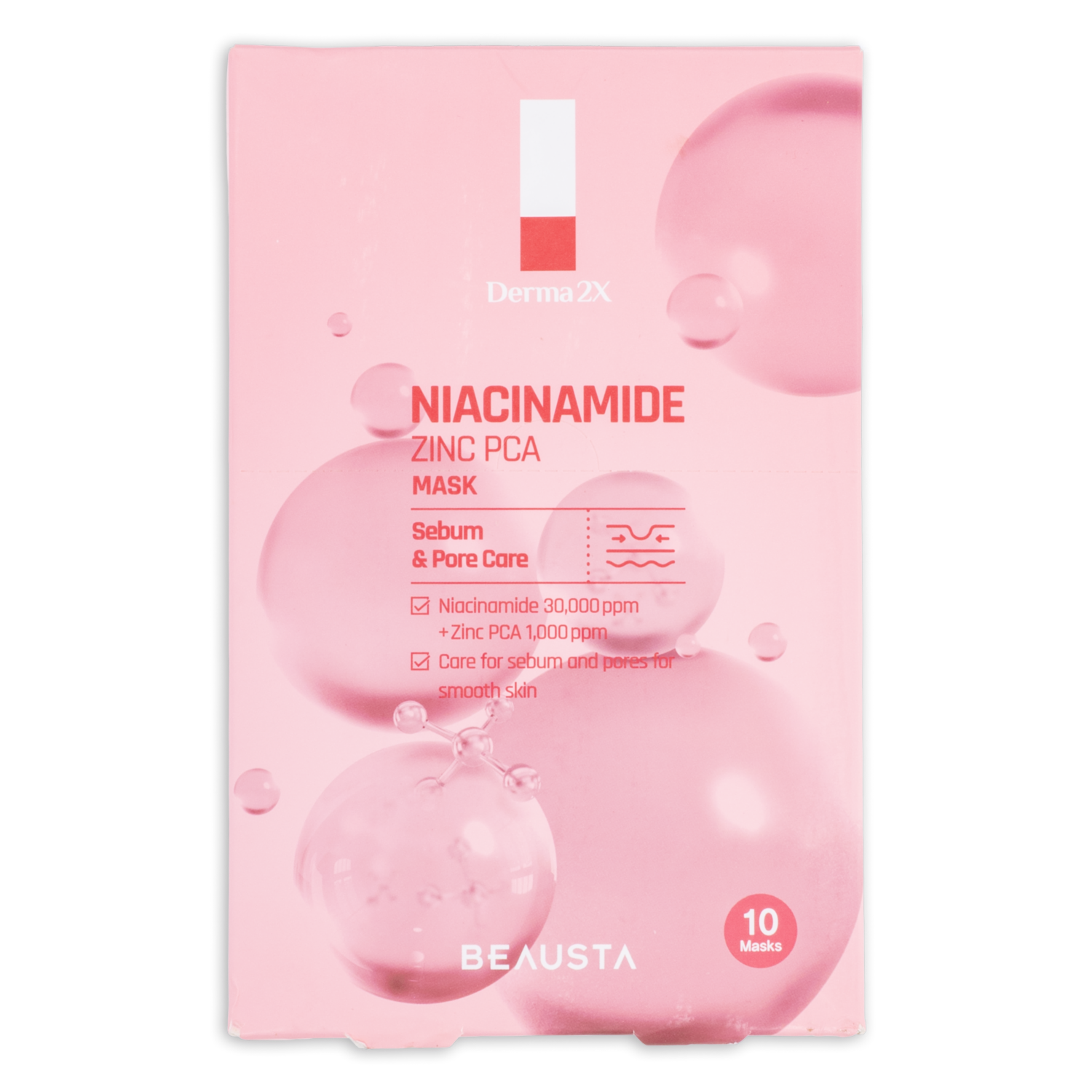 Mascarilla Facial Derma 2X Niacinamide Zinc Pca BEAUSTA X10 Uds