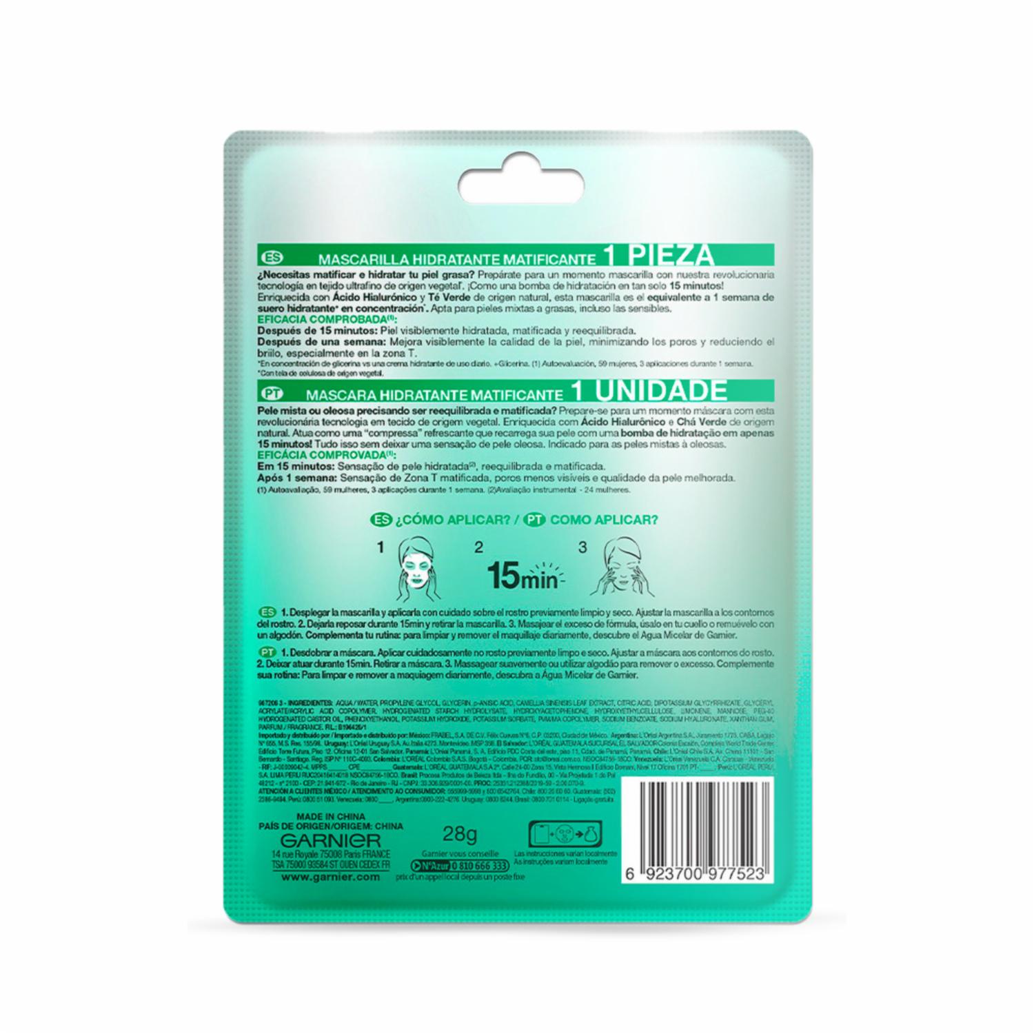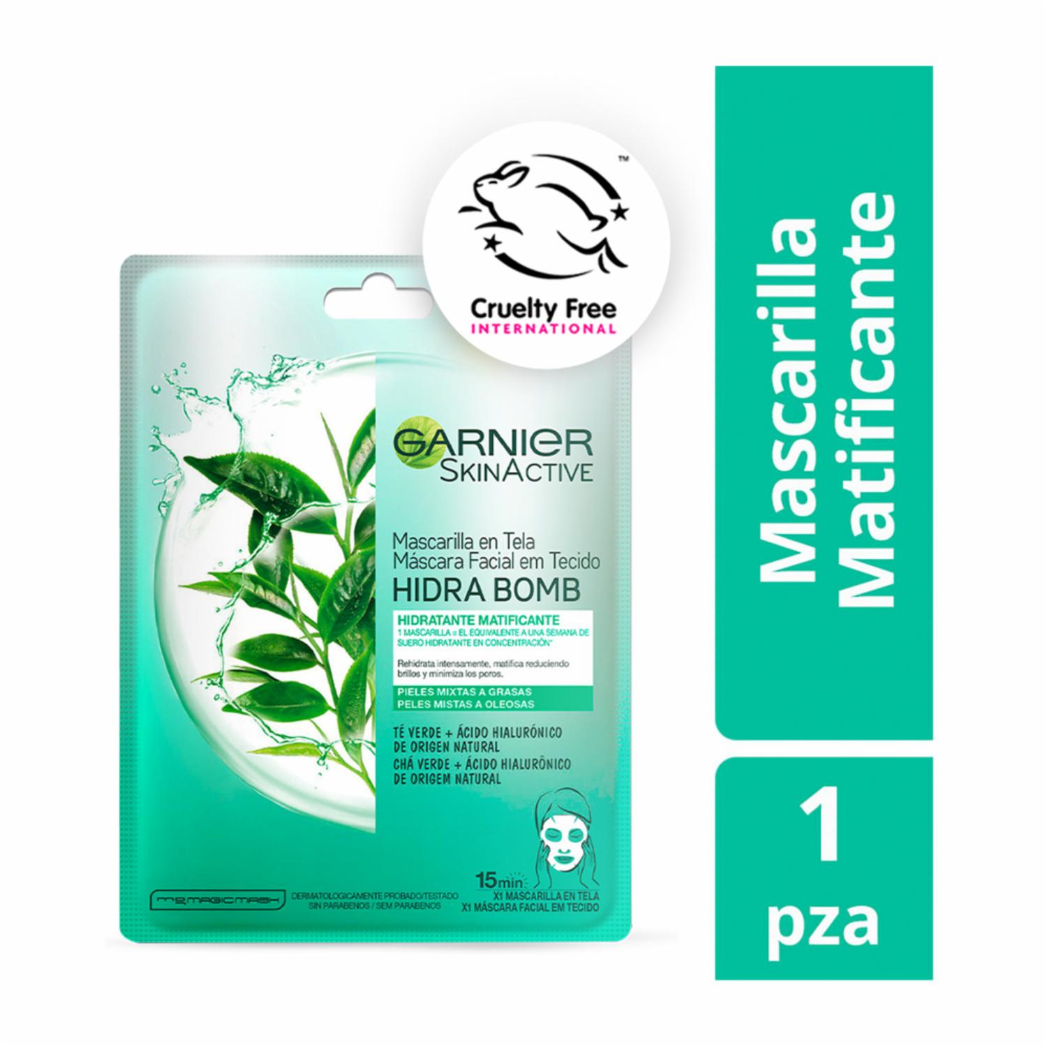 - Conoce la Mascarilla facial en tela matificante hidra bomb Garnier Skin Active. Contiene 1 pieza la cual rehidrata intensamente y te ayuda a reducir el brillo de tu cutis, matificándolo y reduciendo poros.