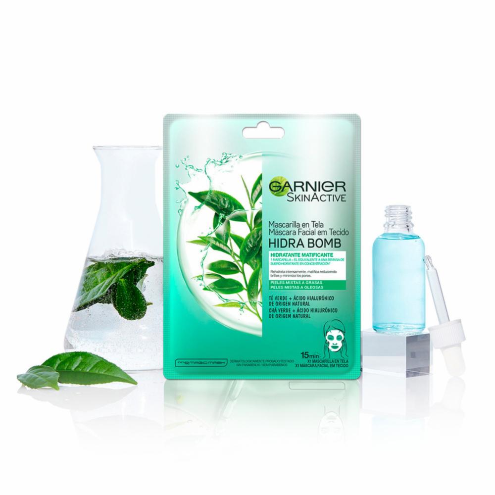 Conoce la Mascarilla facial en tela matificante hidra bomb Garnier Skin Active. Contiene 1 pieza la cual rehidrata intensamente y te ayuda a reducir el brillo de tu cutis, matificándolo y reduciendo poros. -Especialmente para pieles mixtas a grasas. -Tejido ultrafino impregnado con extracto de té verde y ácido hialurónico. -Refresca la piel al instante, dejando una sensación de bienestar. -Ideal para obtener un cutis uniforme y reequilibrado. -Producto cruelty free y aprobado por dermatólogos