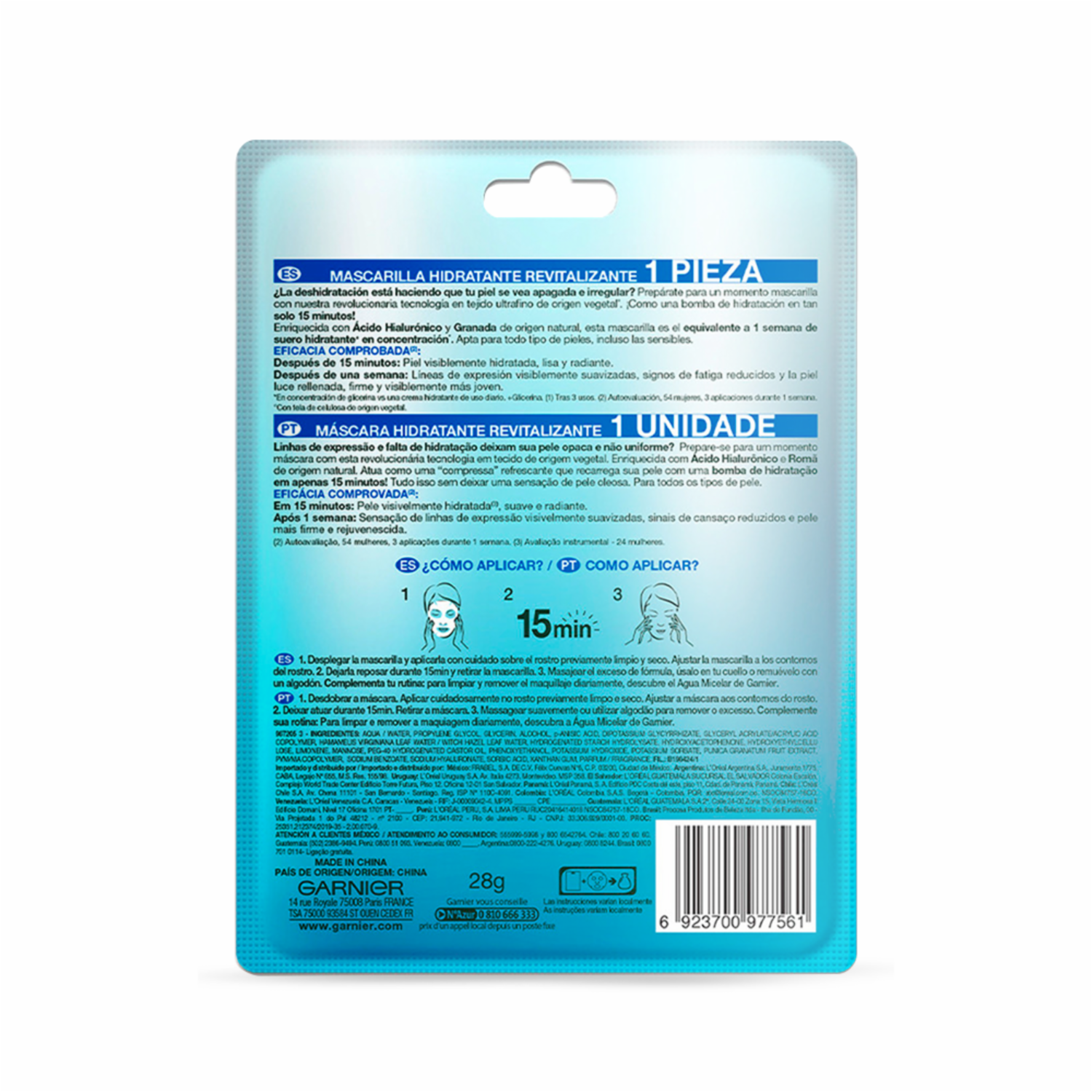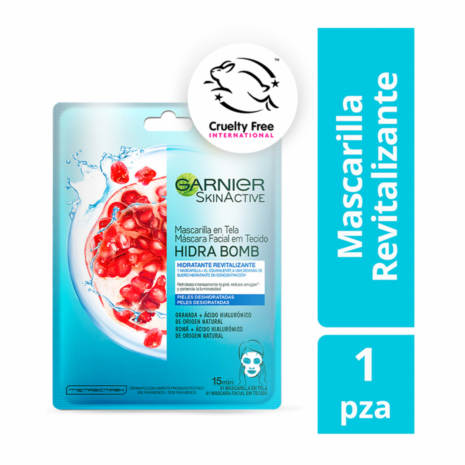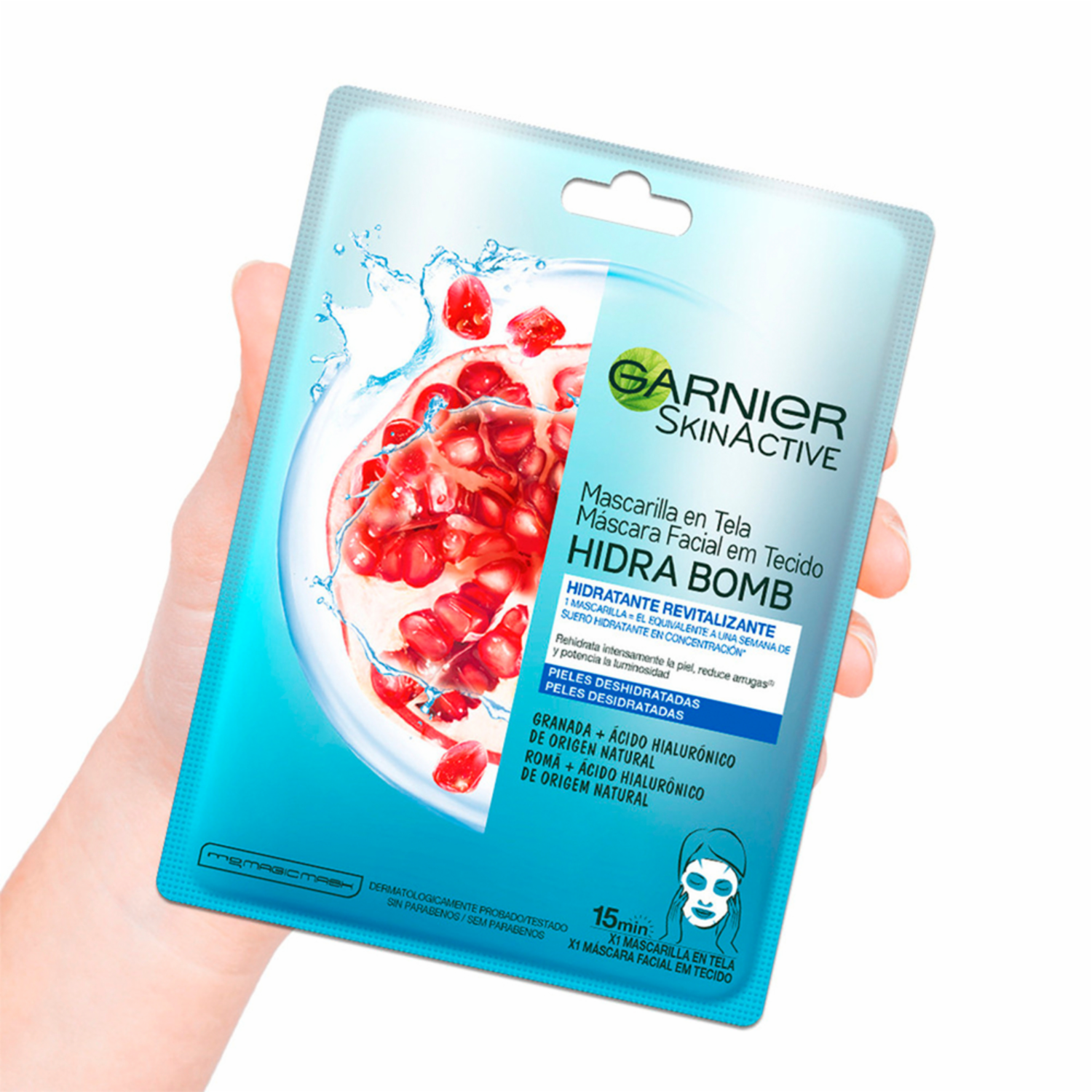 - Complementa tu rutina de skincare con la Mascarilla facial en tela de Garnier Skin Active y su línea hidra bomb revitalizante. Es 1 pieza apta para piel deshidratada. Su fórmula vegana está adicionada con ingredientes naturales que te harán lucir una piel lisa e iluminada.
