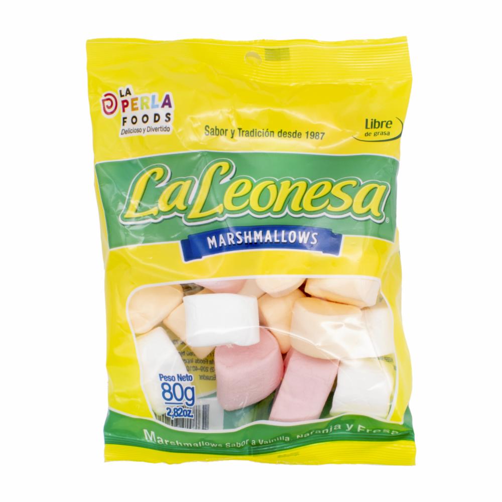 Los "Masmelos Medianos" de la marca LEONESA son malvaviscos o marshmallows de tamaño mediano. Con un peso de 80 gramos, estos malvaviscos son dulces y suaves, perfectos para disfrutar solos, añadir a bebidas calientes como chocolate caliente o incluso para hacer malvaviscos asados