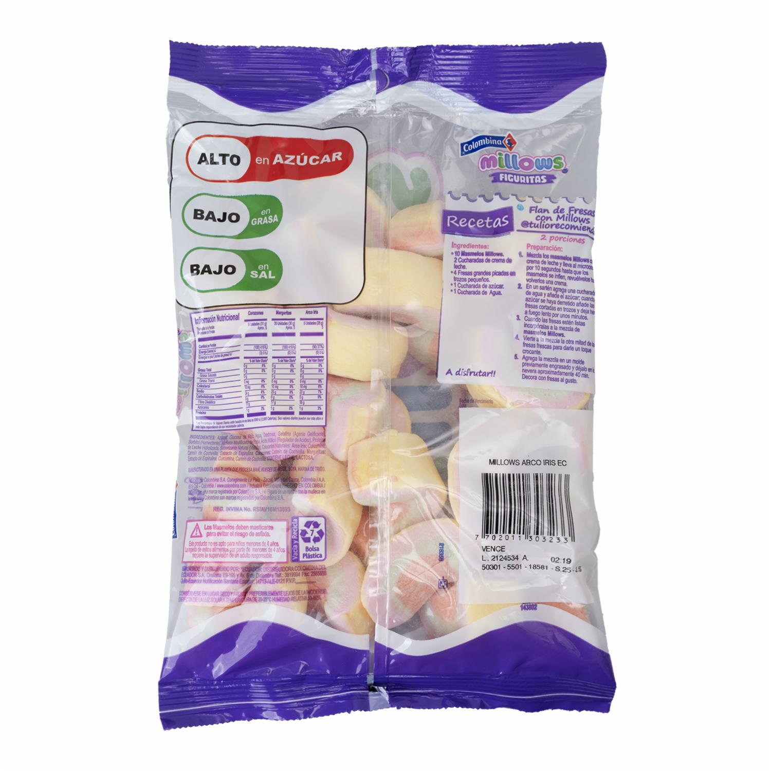 consultando preciosMasmelows Arco Iris MILLOWS 145 G – MILLOWS. Disponible en nuestros locales. Precio y stock pueden variar según la tienda.