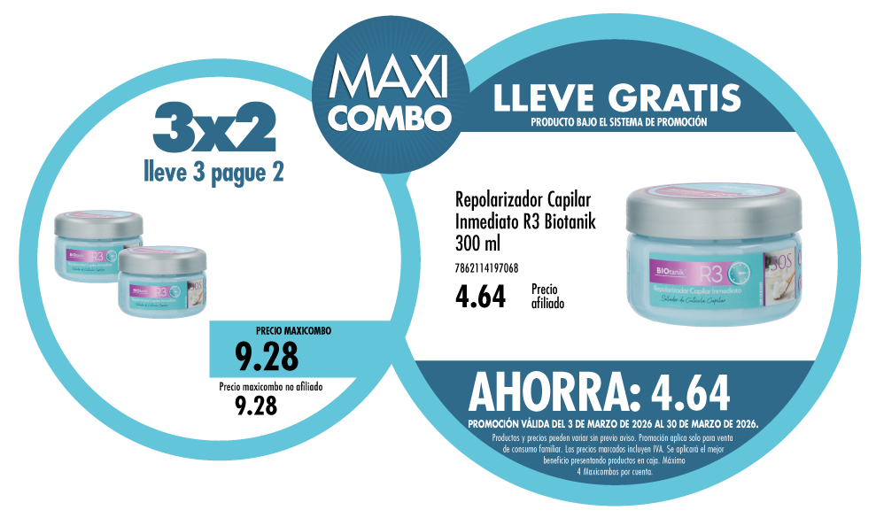 Maxicombo 3×2 -50. Disponible en nuestros locales. Precio y stock pueden variar según la tienda.